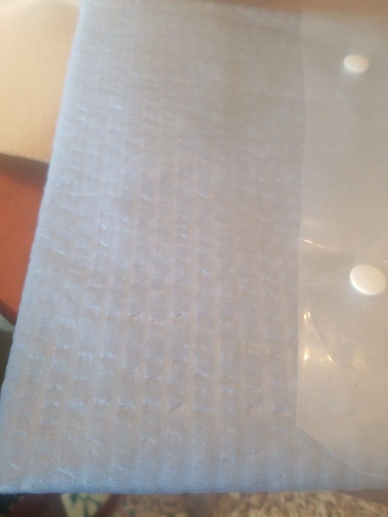 This is a new shower curtain for parking pine never been used never taken out of the package ordered for my guest bathroom and decided to go with something else it is available brand new and ready and you don't have to pay for shipping
