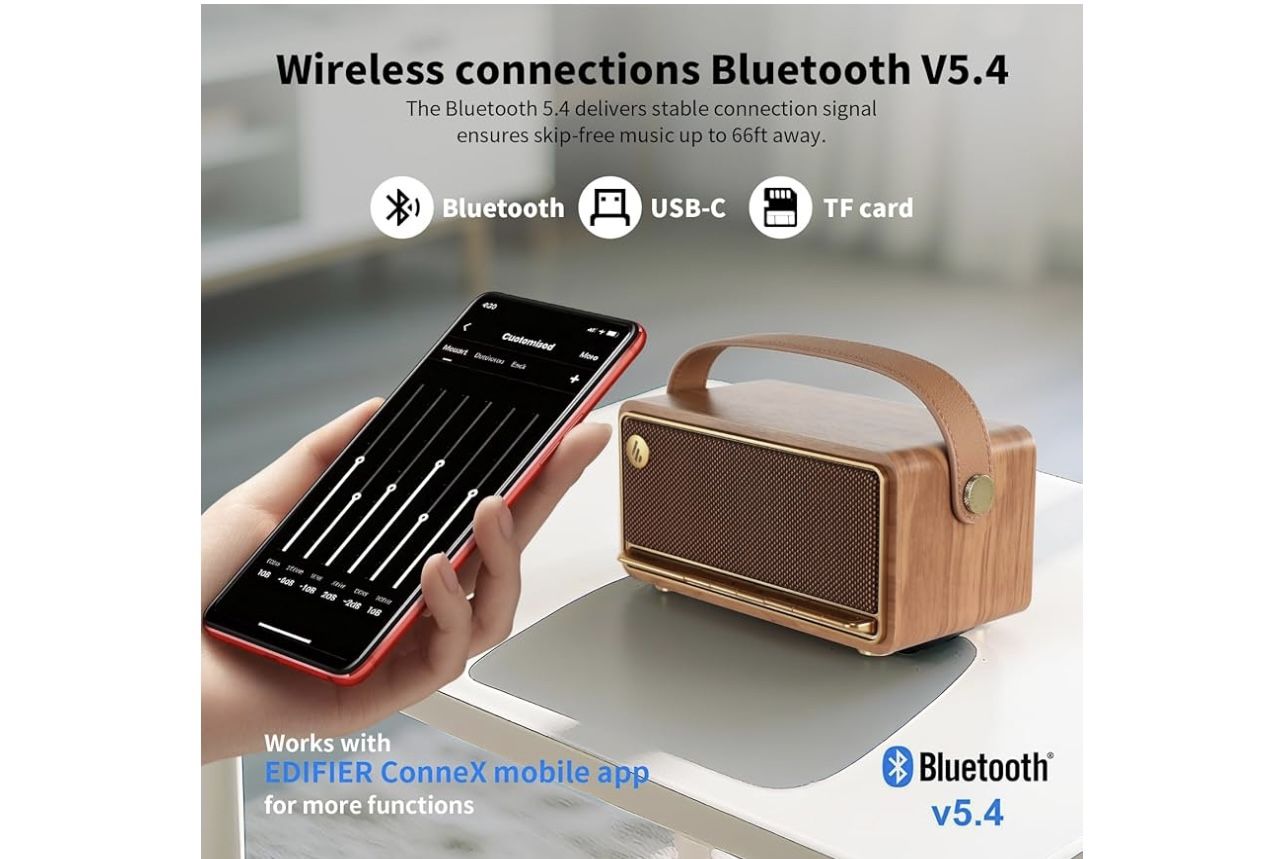 Edifier Retro Wood Bluetooth Speaker, Wireless Portable Speakers with 40W Hi-Res Audio, Stereo Pairing ConneX App, USB and TF Card Brown Amazon's