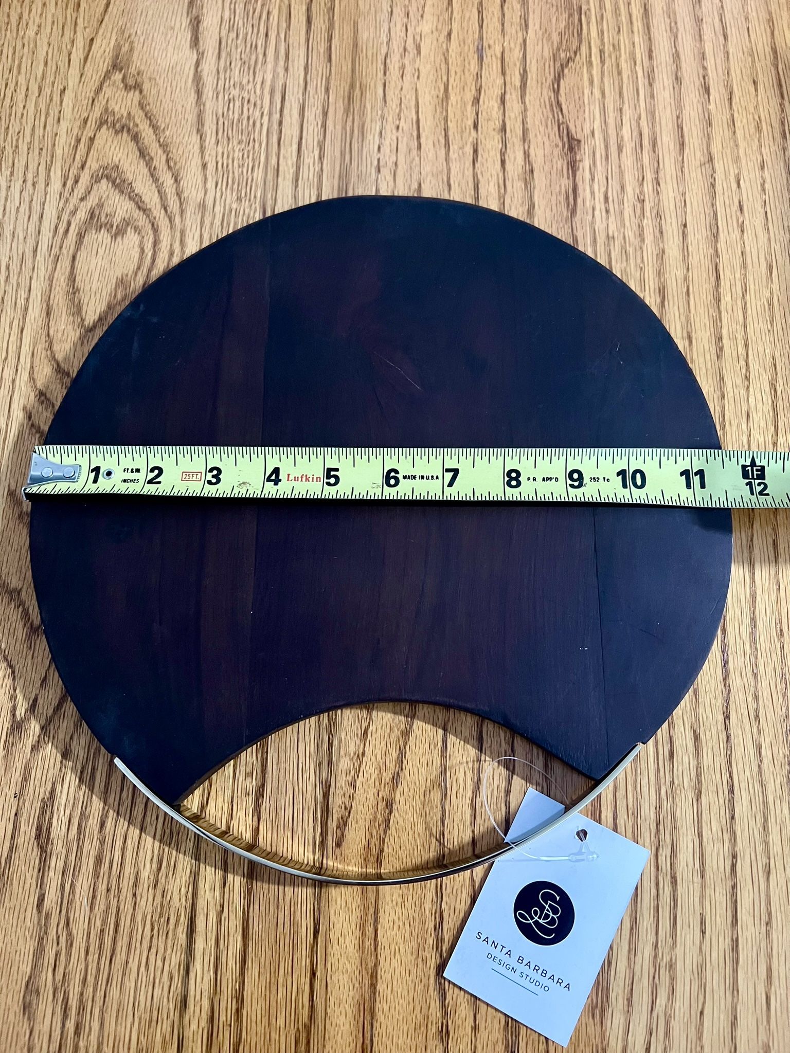 BRAND NEW with tags Santa Barbara Design Studio 12” diameter Mango hardwood charcuterie board with polished brass handle. New/unused. Will throw in a set of 8 holiday 9” serving trays. Asking $10.00. *** MESA ***