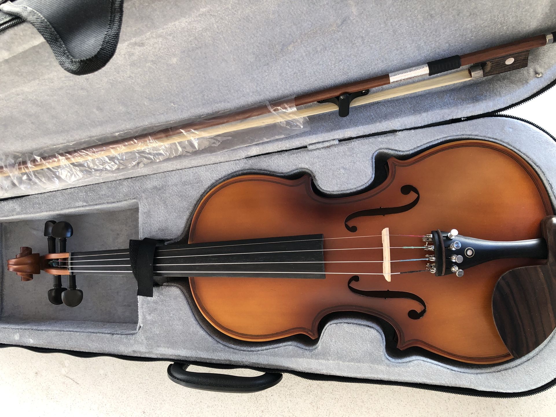 Violin Old German style varnish, Solid maple spruce, ebony finger board, Hand made instruments, Build in four fine tuners, Professional set up by violin maker in El Monte Ready to play, Come with Brazil wood bow, rosin, violin case, Local pick up in El Monte, We do violin repair
