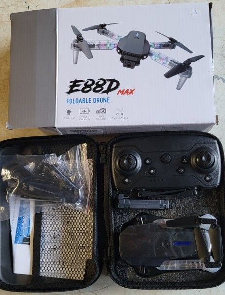 New In Box E88D Max Foldable Drone With LED Lights, Dual Cameras,