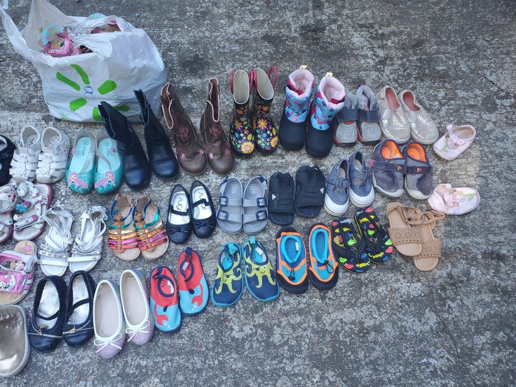 garage sale....pm for address most shoes are a dollar or less a pair, also lots of clothes, toys and household items