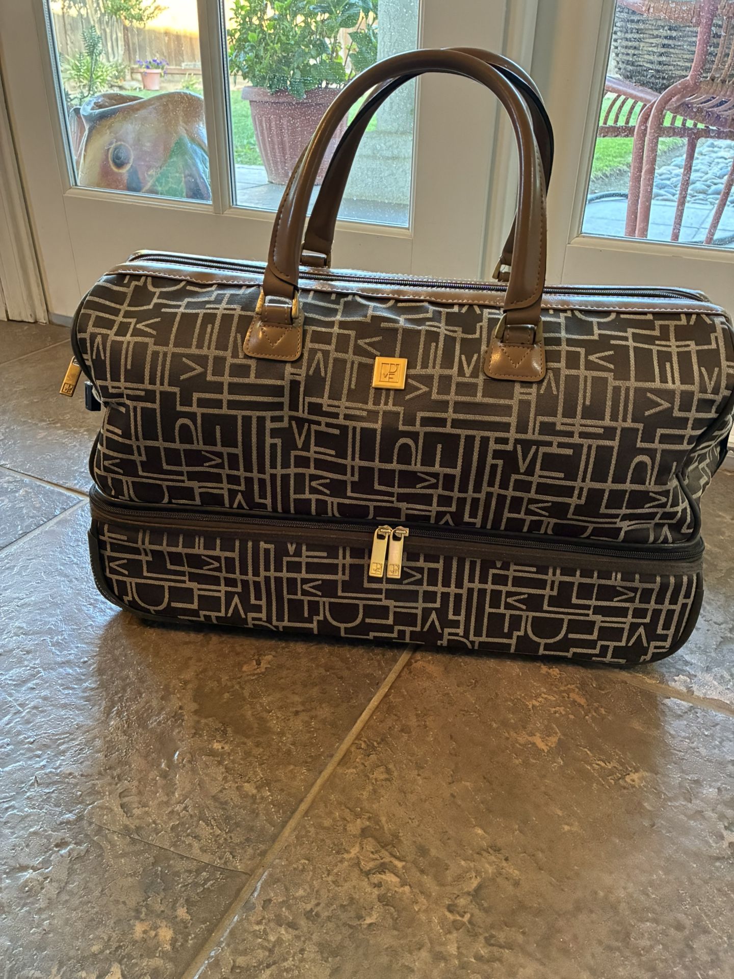 Diane Von Furstenberg brown 13” x 20”. Fits in plane overhead. In very good condition. Located on Herndon and Polk.
