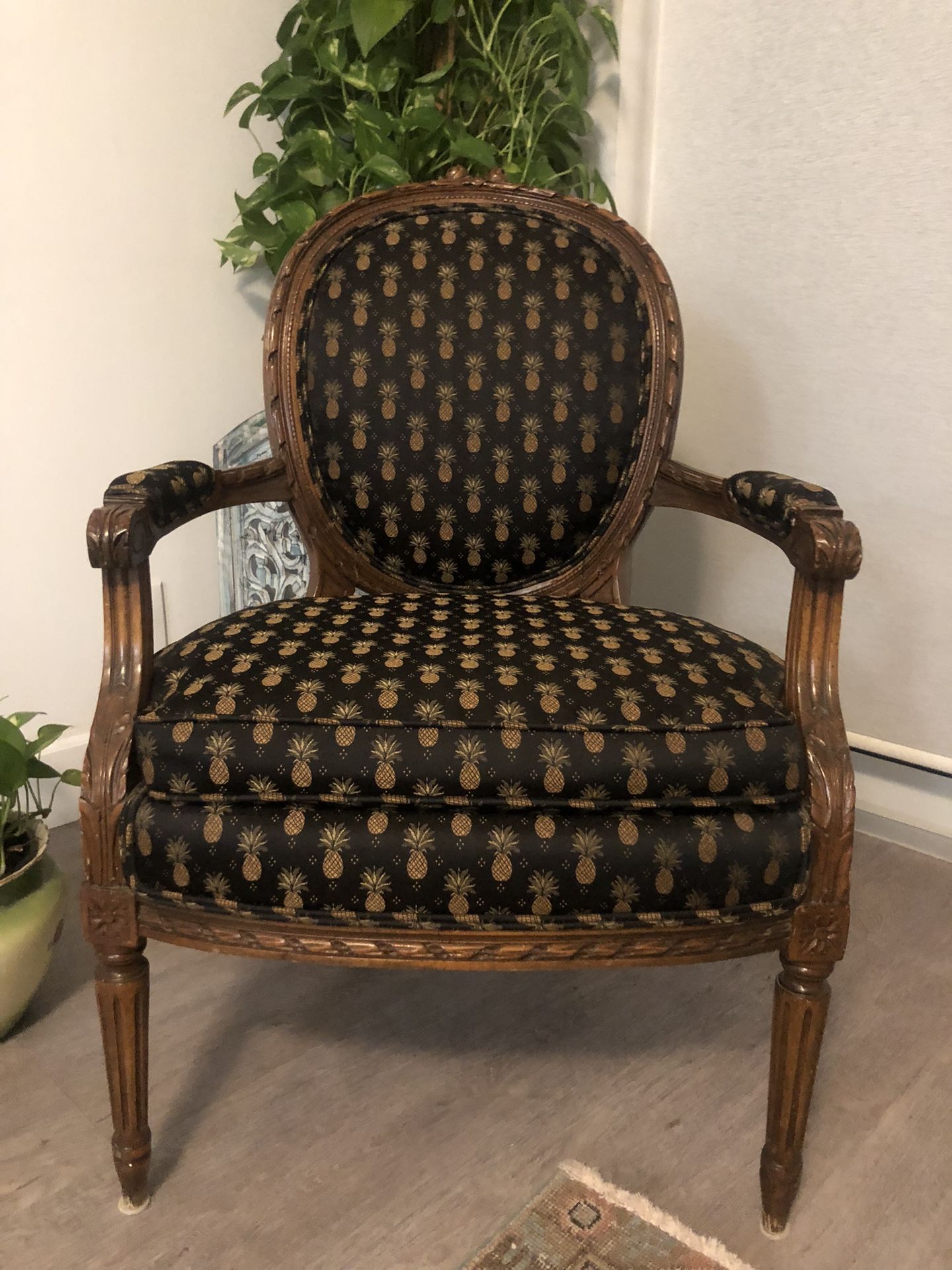 Antique Beautiful , Pineapple. Design chair, Reupholstered.. great condition.. Ht/:35 in /Length-22/Deep-19..