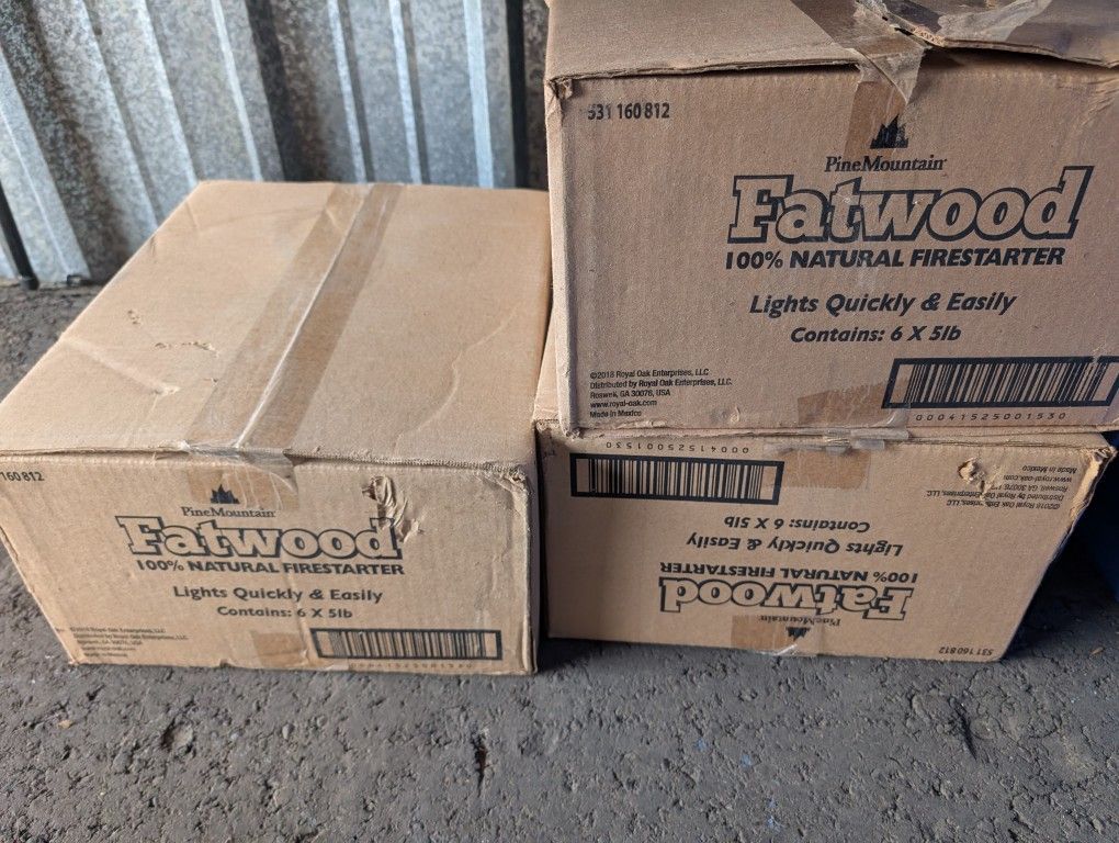 3 Cases Of Fatwood Real Pine Wood Firestarter 30lbs A Box