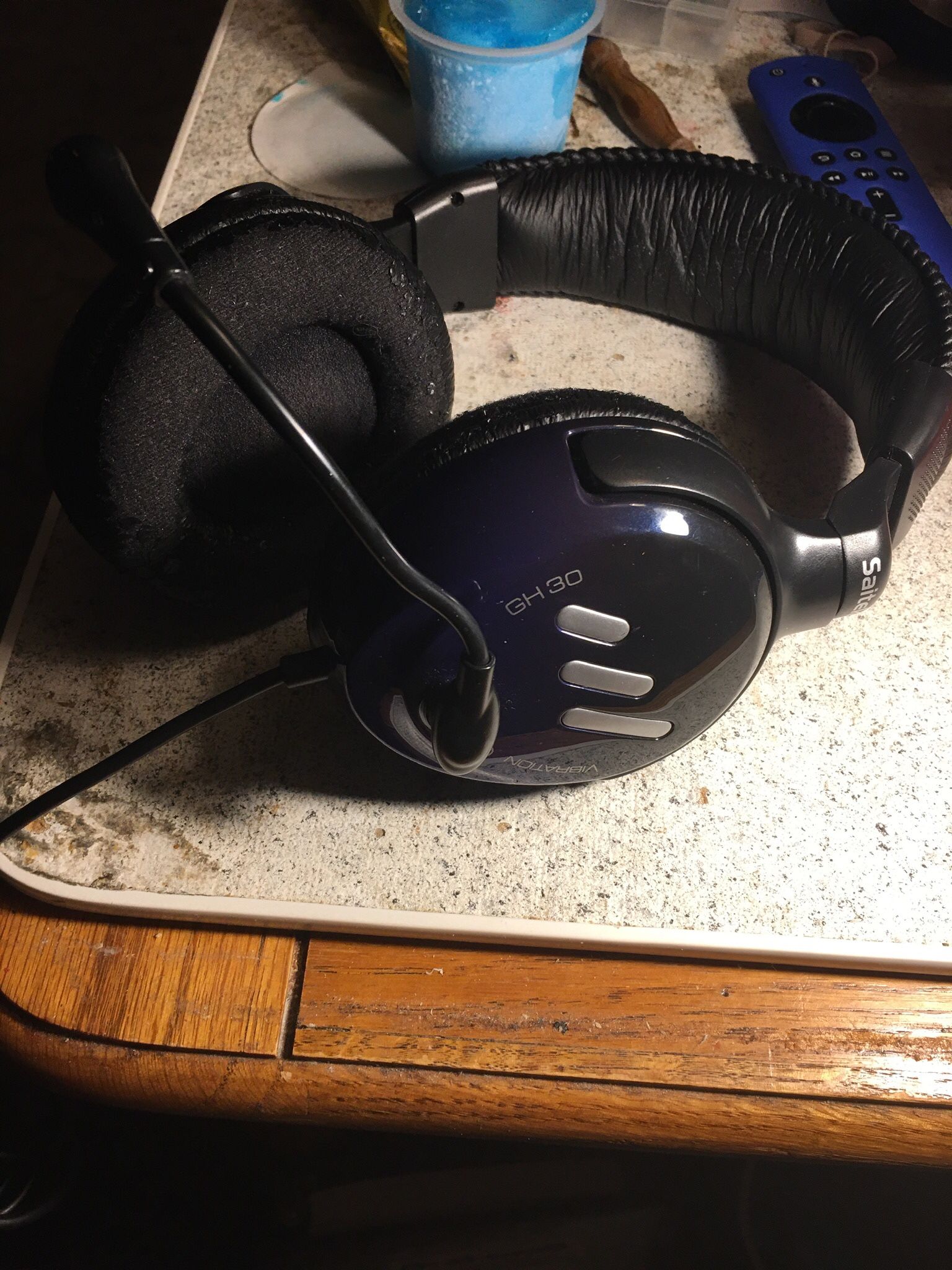 Blue computer headphones Gas boom mike Used condition Very nice headphones
