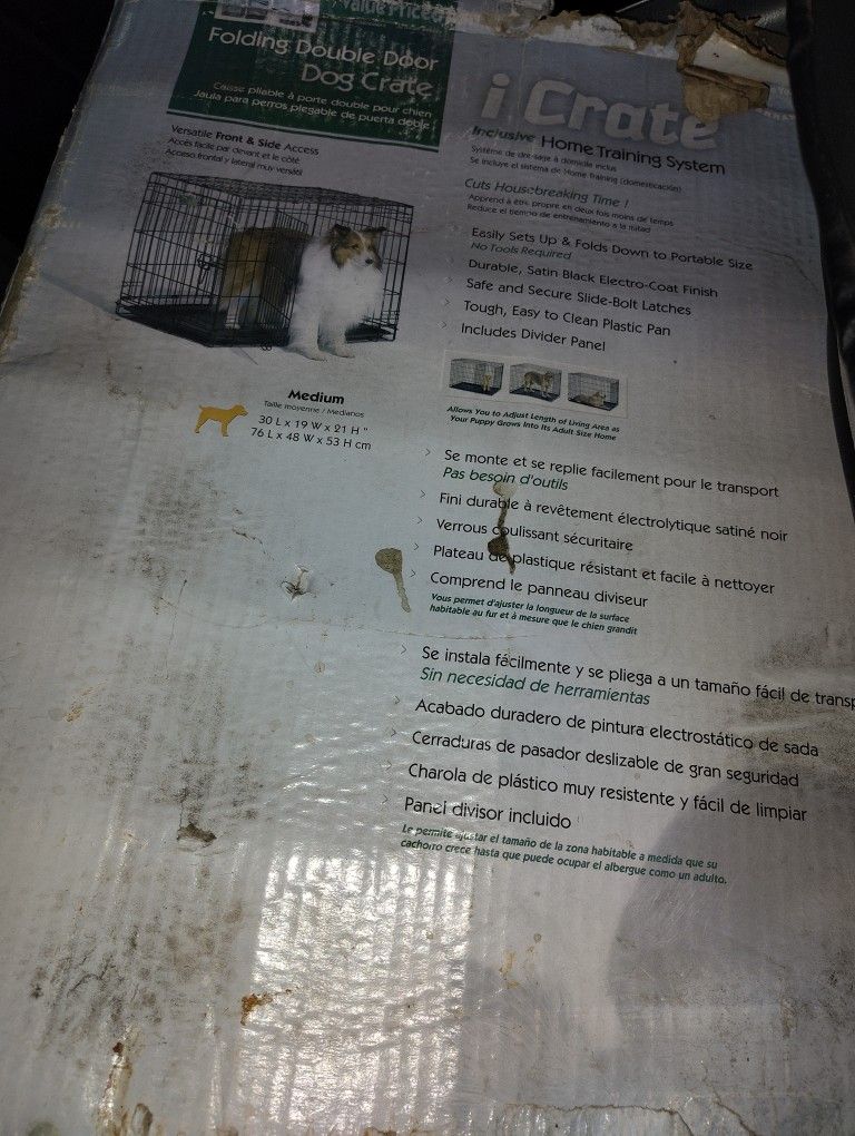 This particular model is the medium size, measuring 30 inches L x 19 inches W x 21 inches H (76 L x 48 W x 53 H cm). Two Doors The double-door design offers versatile access from the front or side, providing flexibility for placement in a home or vehicle. Inclusive Home Training System It is marketed as an all-in-one system for puppy training, designed to cut housebreaking time. Divider Panel A free divider panel is included, allowing the living area size to be adjusted as a puppy grows into an adult dog. Durable Construction The crate features a durable, satin black electro-coat finish for rust resistance, secure slide-bolt latches, and rounded corners for safety. Portability The no-tools-required design allows it to set up easily in seconds and fold down flat to a portable size for travel, with included plastic carrying handles. Easy to Clean It comes with a tough, removable, leak-proof plastic pan for easy cleanup.