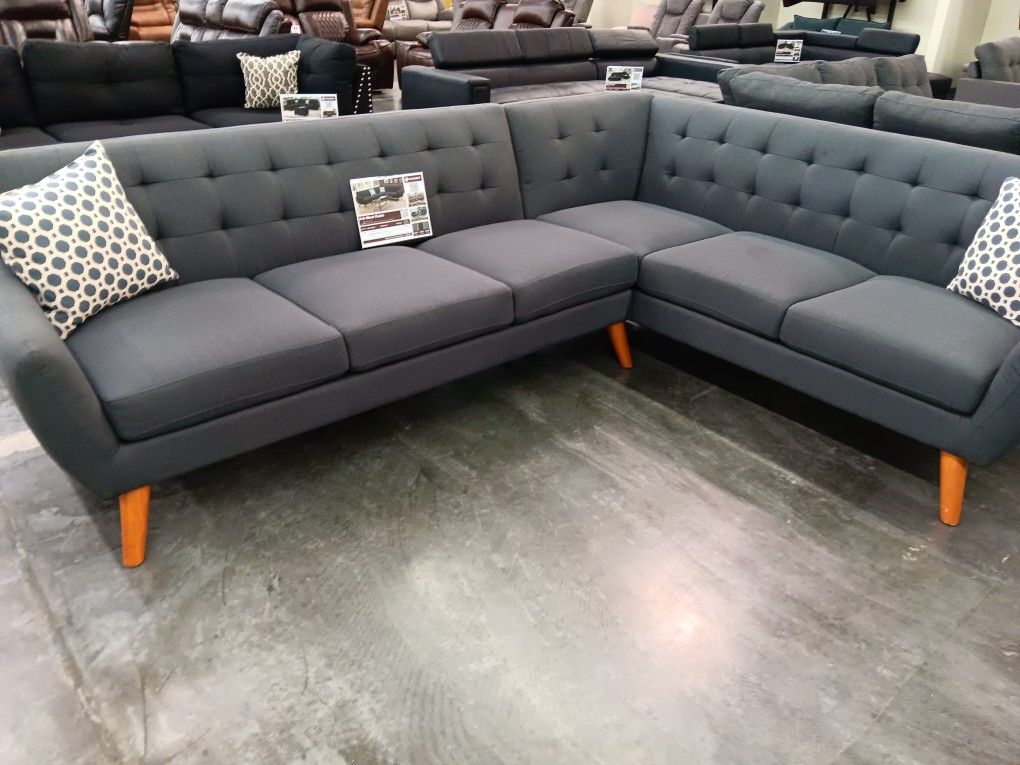 Also available in Grey(microfiber) & Laguna(microfiber) Color:ash black Material: microfiber Dimensions Overall: 111" x 85" x 33"H; Left-facing Sofa: 76" x 35" x 33"H; Right-Facing Chaise: 35" x 85" x 33"H Brand new in the box straight from distributor 6 month factory warranty included. Do offer delivery and assembly