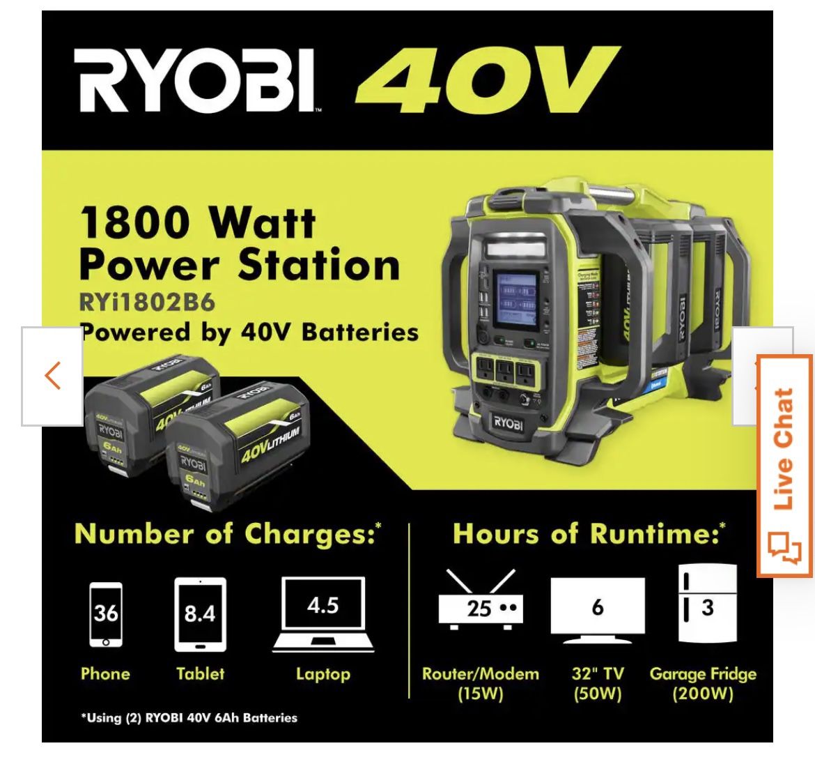 Brand new in box Tool only This sells at Home Depot for $650 Ryobi 40v 1800 Watt Portable Battery Power Station Inverter Generator And 4 Port Charger I also have ryobi batteries brand new in box available please check other listings