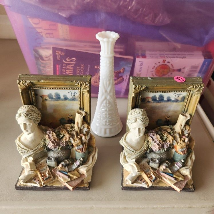 Beautiful book ends with attached picture frames to each one of them. In mint condition. Heavy items. Sold in one pair of 2