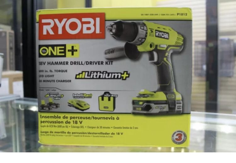 Ryobi P1812 18V ONE with Lithium Battery and Hammer Drill Kit