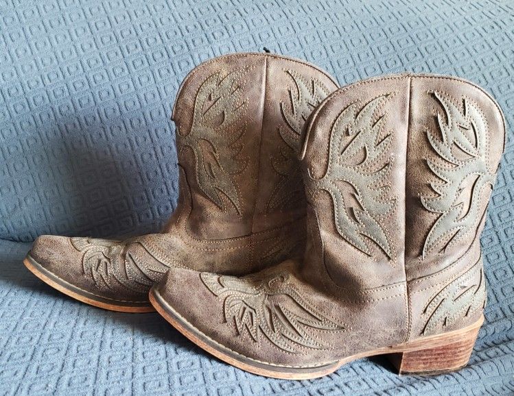 Worn for wedding and then stored. Brown Roper snip toe with eagles.