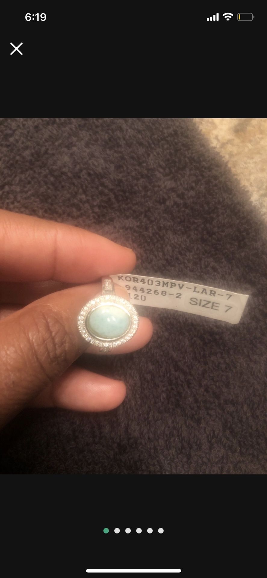 Famous Dominican Gemstone Larimar Ring. It’s an absolutely stunning ring with tiny white Sapphire surrounding it. 925 Sterling Silver size 7