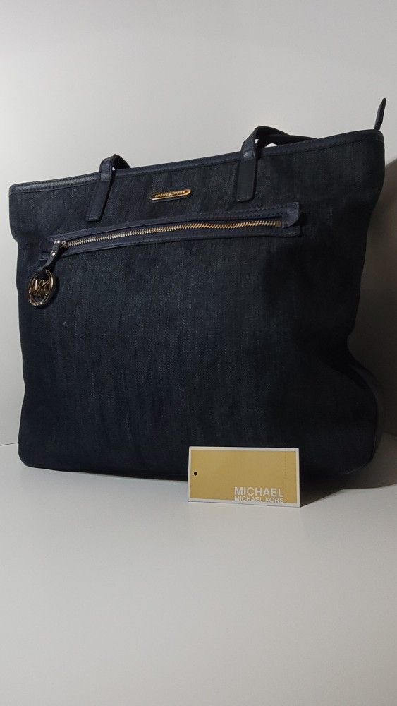 Mk demin purse big have some wear on straps as shown in picture will meet west side only .