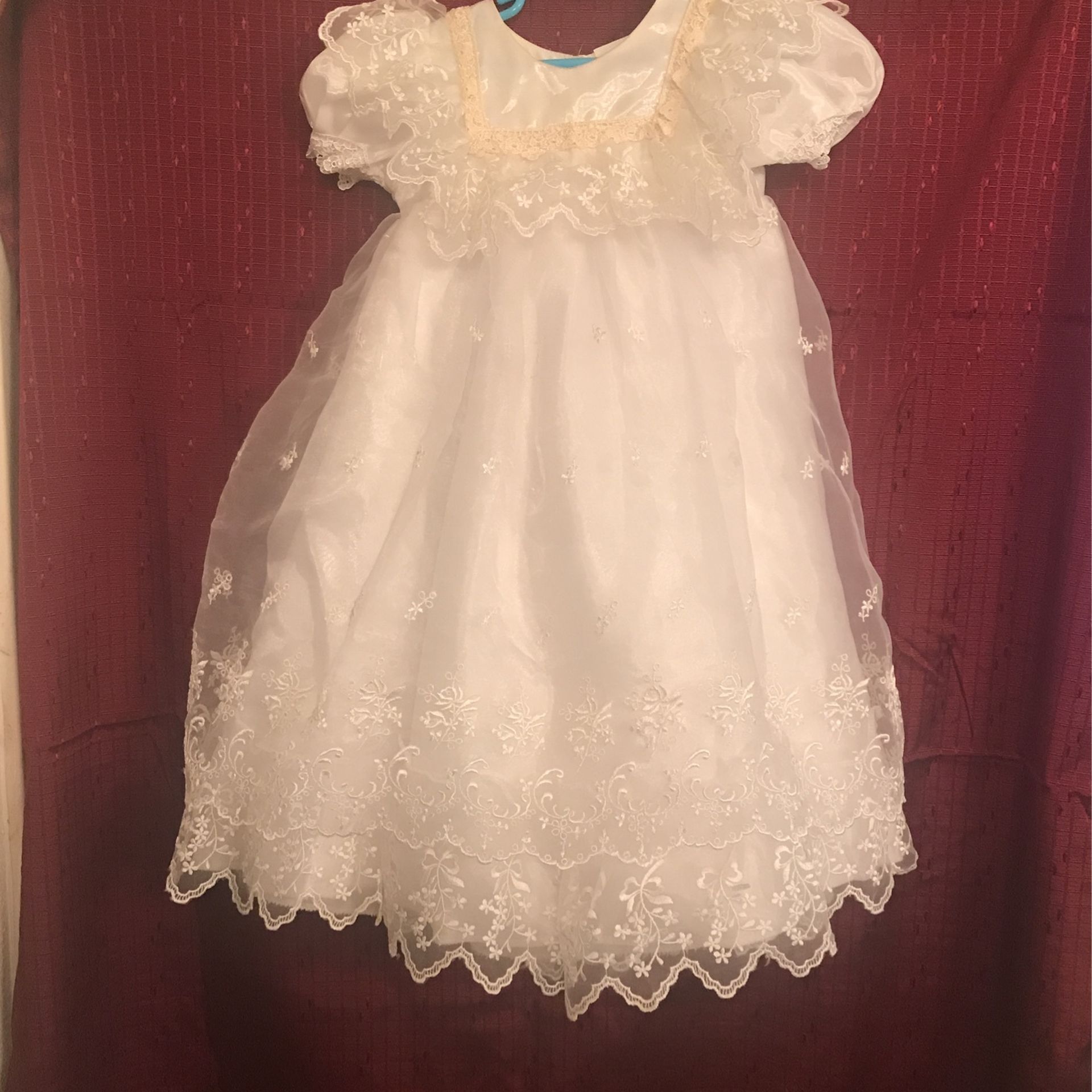 This dress is absolutely gorgeous. It is off white with re embroidered lace. Angel opening in back. Three layers. Paid $299 and only worn onceZ C3