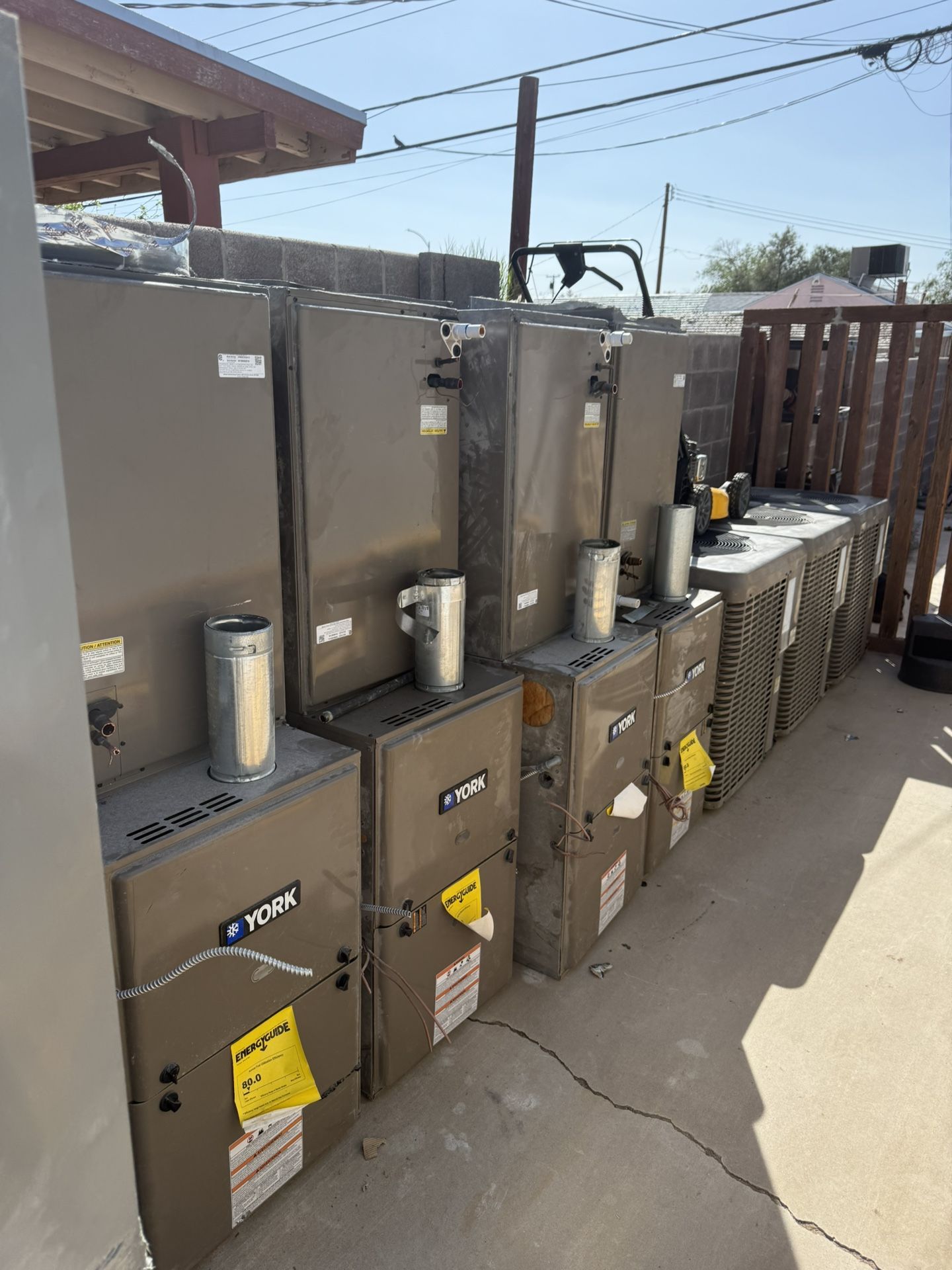 I have three outside condenser units brand new that sat outside and faded with atmosphere. Never installed. Also have furnaces and condensers propane. Model and serial numbers are in photos. Do the research.