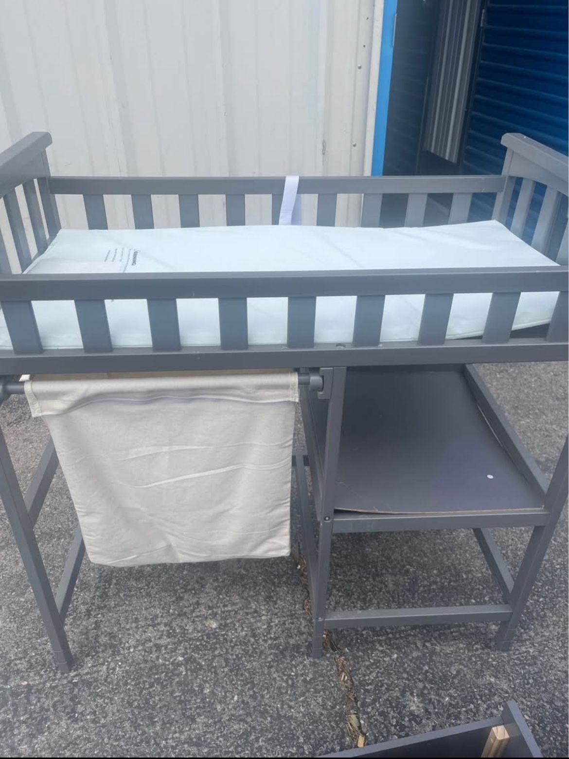 Brand New changing table only used a few times. wood is dented a little from moving but other than that it’s in perfect condition!