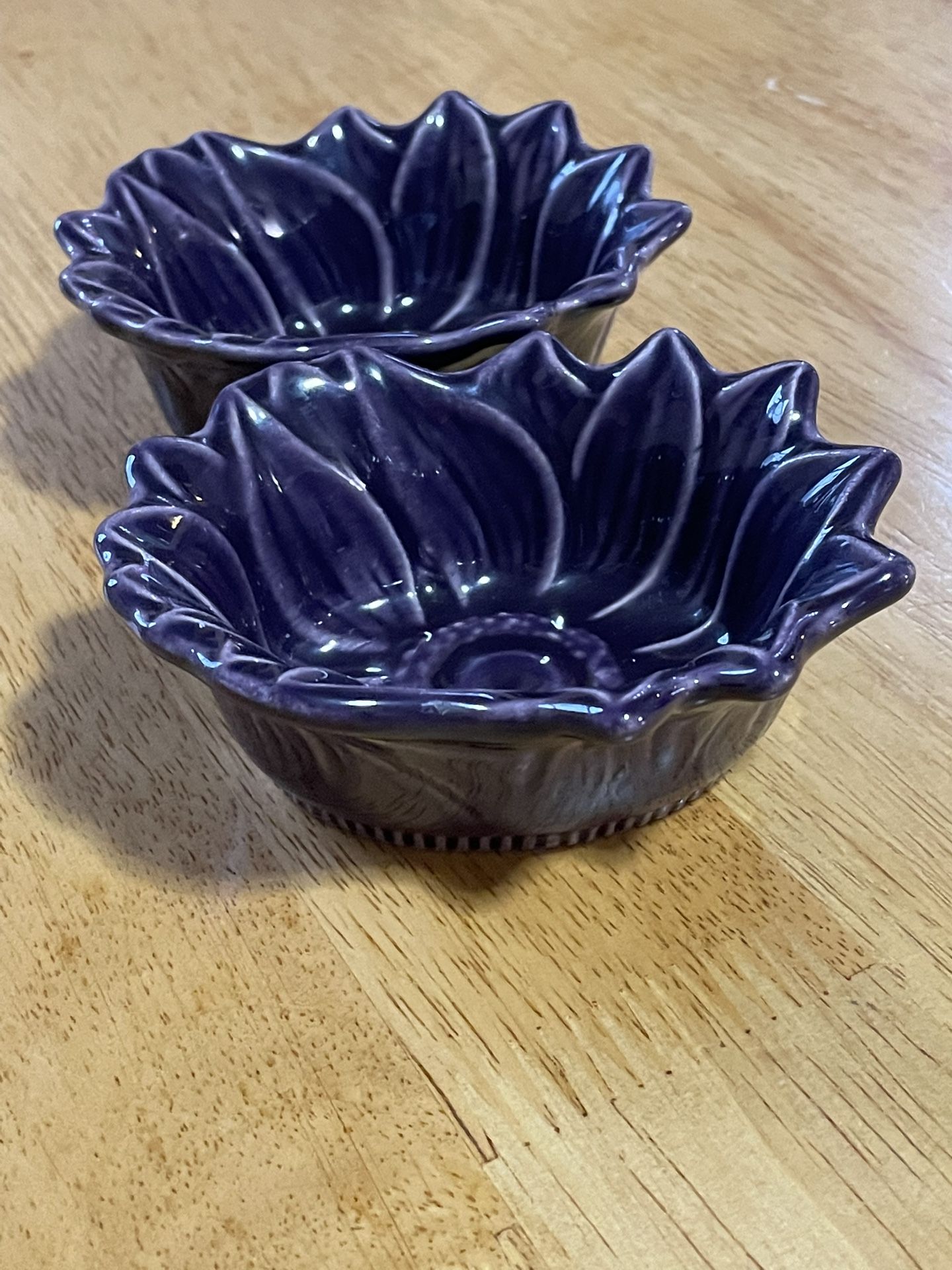 2 Appolia French Porcelain Purple Sunflower Serve Ware~Bake Ware Ramekin Bowls