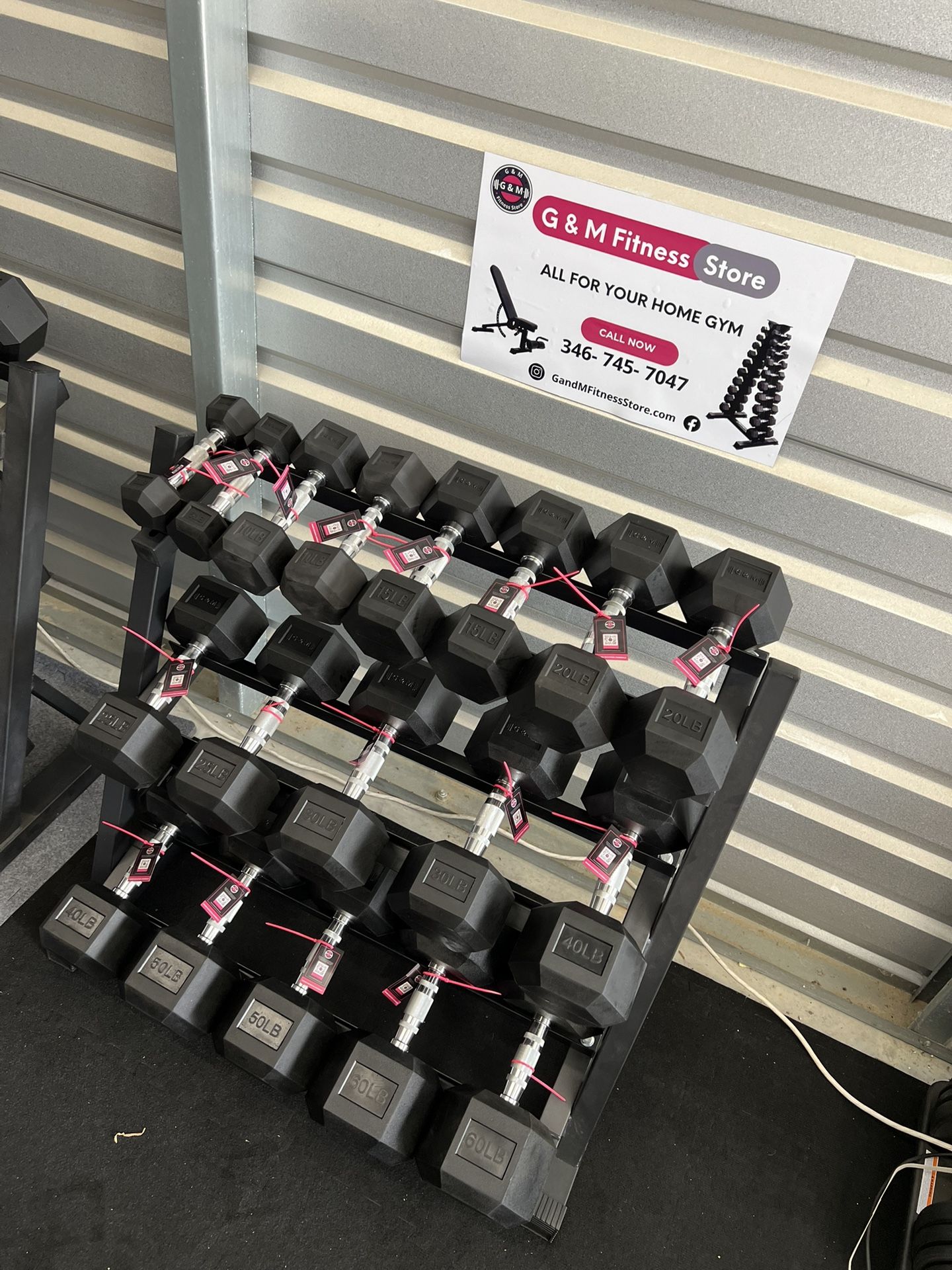 Top quality ⭐️New pair of 5,10,15,20,25,30,40,50,60lb rubber dumbbells with rack. $640