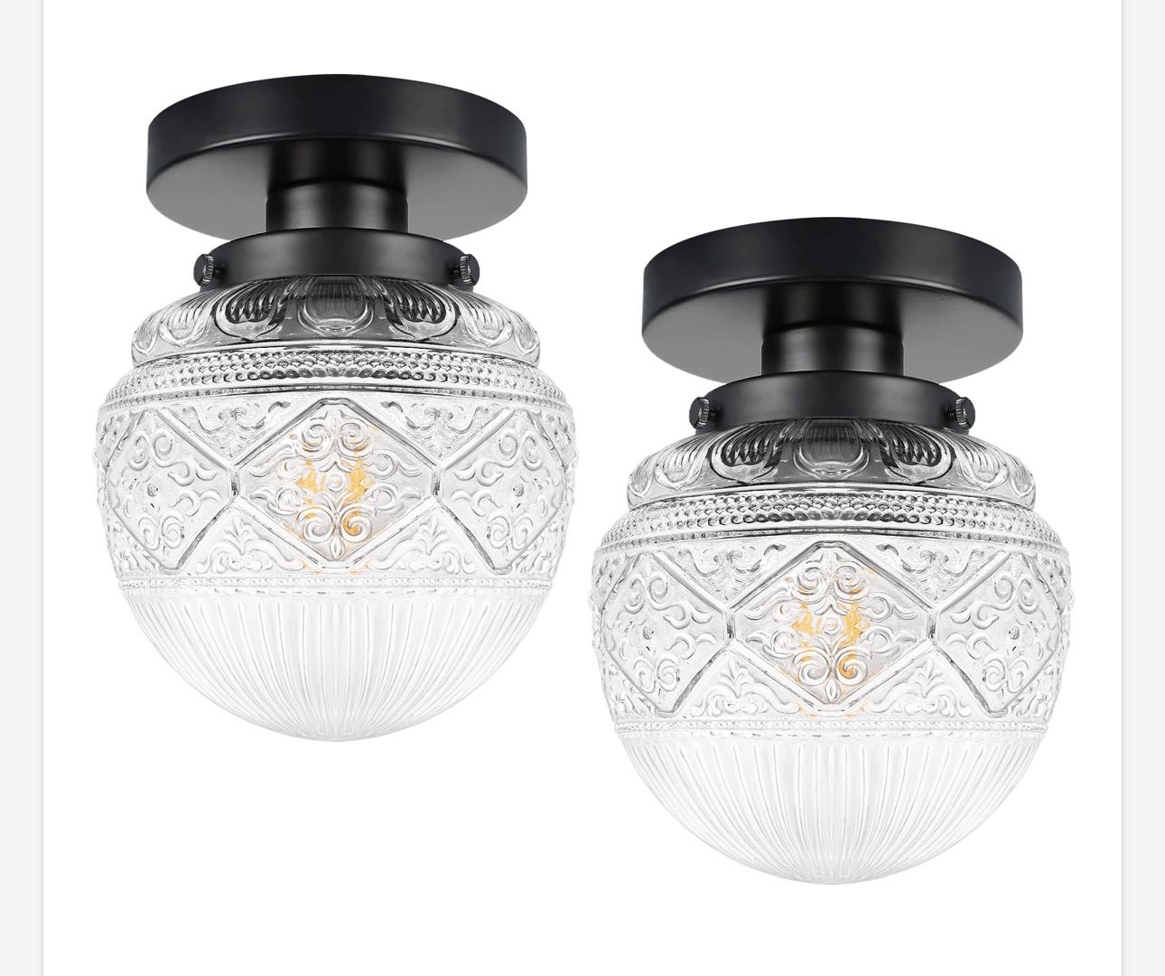 APOTO 2 Pack Semi Flush Mount Ceiling Light Fixture Black,Small Hallway Light Fixtures Ceiling,Vintage Globe Glass Close To Ceiling Lights,Chandelier Light Fixtures Ceiling Mount For Kitchen Hall