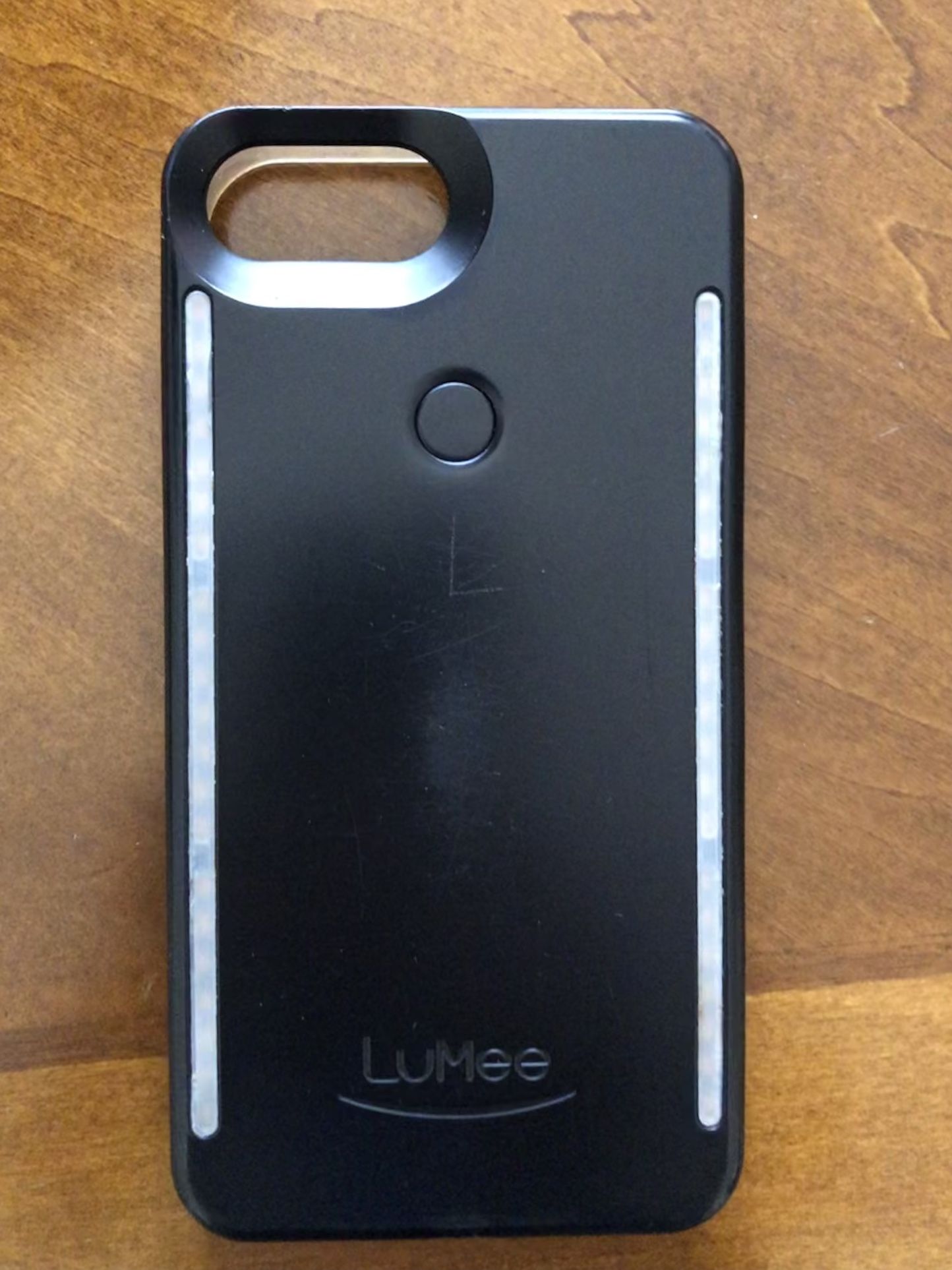 Lumee iPhone case for iPhones 7 plus and 8 plus. Case lights up for photos. Charges with a micro USB cable.