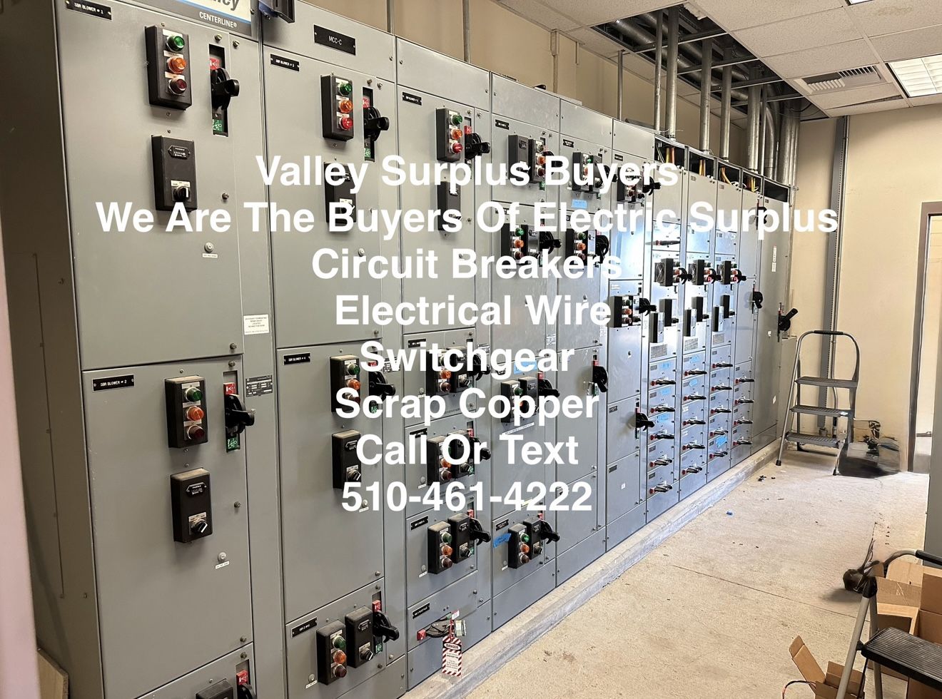 Valley surplus call or text for fast quotes We are buyers of Electrical surplus commercial and industrial Circuit Breakers molded case air and vacuum breakers MCC buckets Switchgear and panels Brands of Breakers we purchase Cutler hammer/Eaton Siemens Square D GE All amps voltage Copper wire New used partial leftover spools And scrap copper
