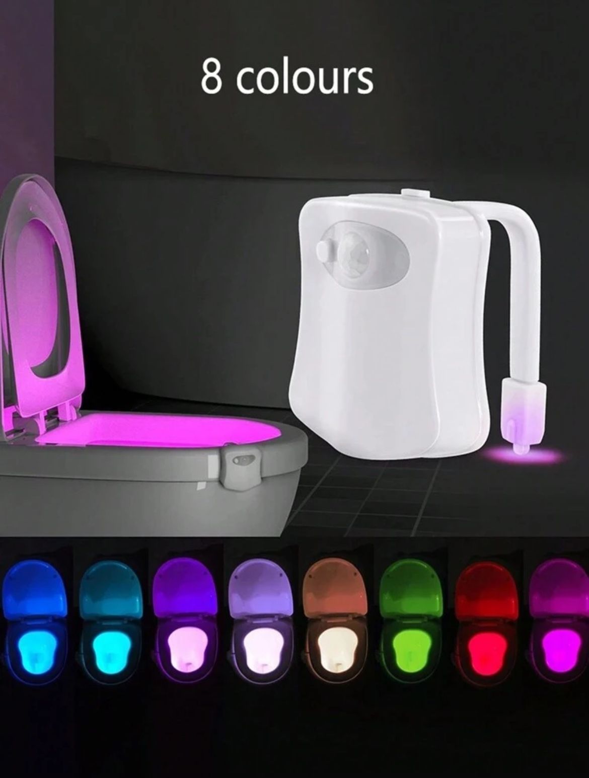 This LED night light is designed for a bathroom. It features a motion sensor and changes colors. The light is wall-mounted and water-resistant, making it ideal for a bathroom setting. It uses AAA batteries and has a power consumption of 5-9W. The light is easy to clean and emits a color-changing LED glow.