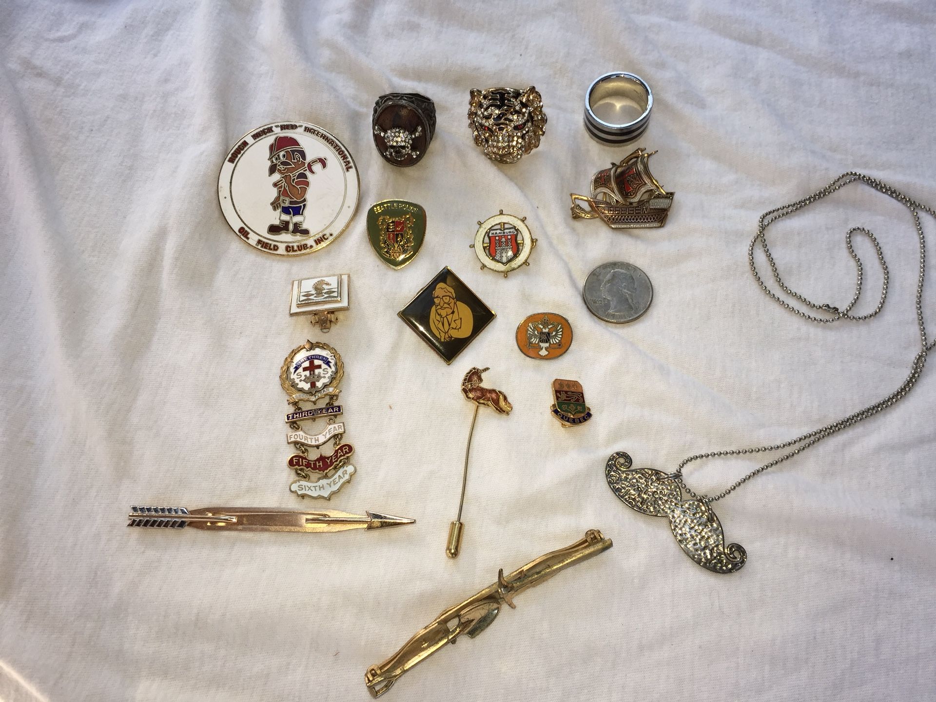 Random mix of pins, rings, tie tacks, and buttons. $10 for all of it