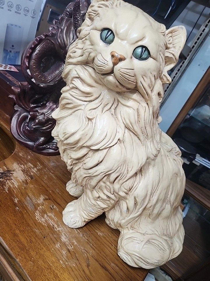 Larg Chalkware Persian Angola Cat, Statue Figurine 22 inches artwork good condtion