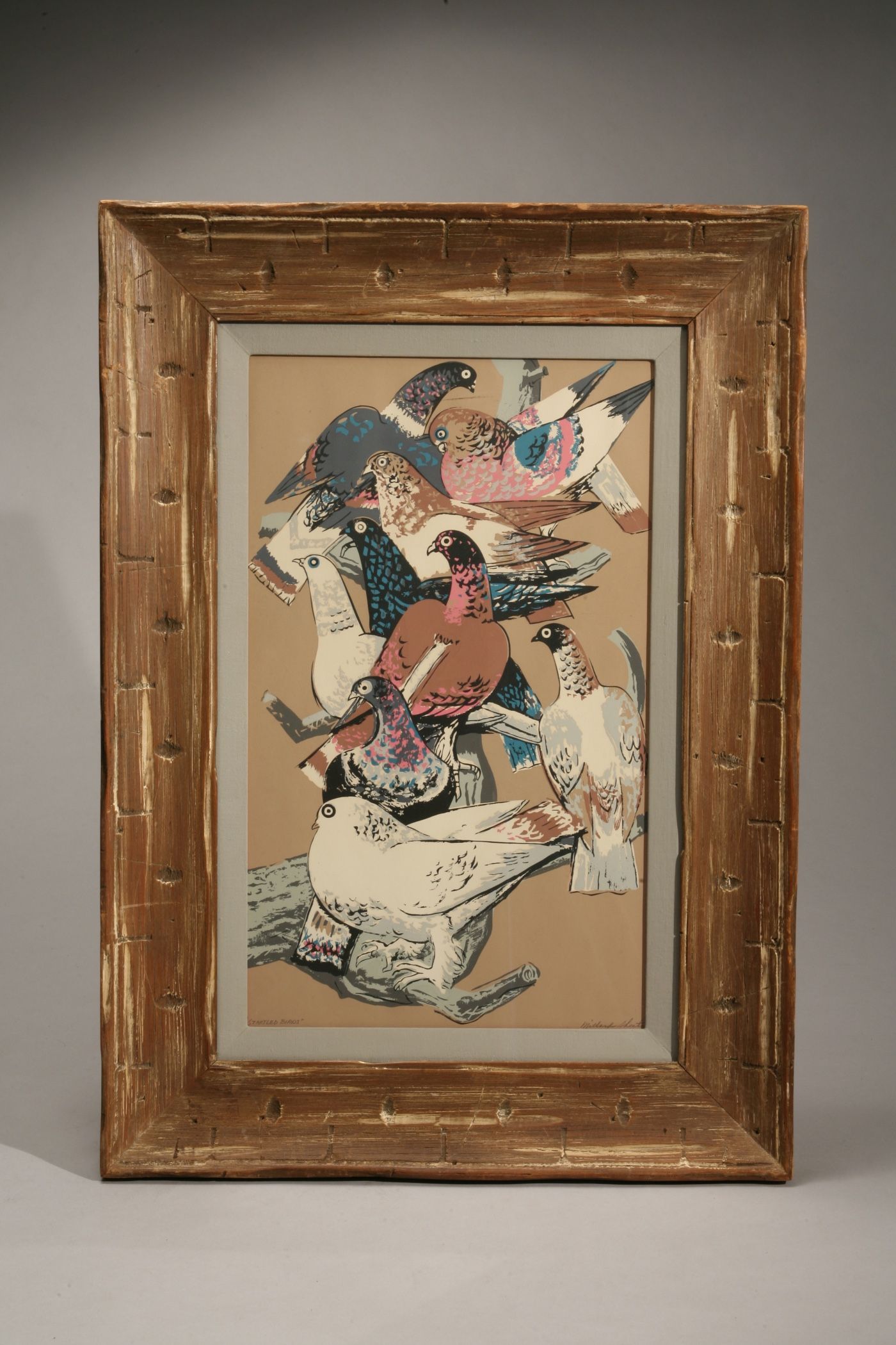 Millard Sheets "Startled Birds" Serigraph # 97/380 Frame Size: H.29 ½" x. W. 21 ¼" Image Size: H. 20 1/8" x. W. 12 3/8" (Inside mat)