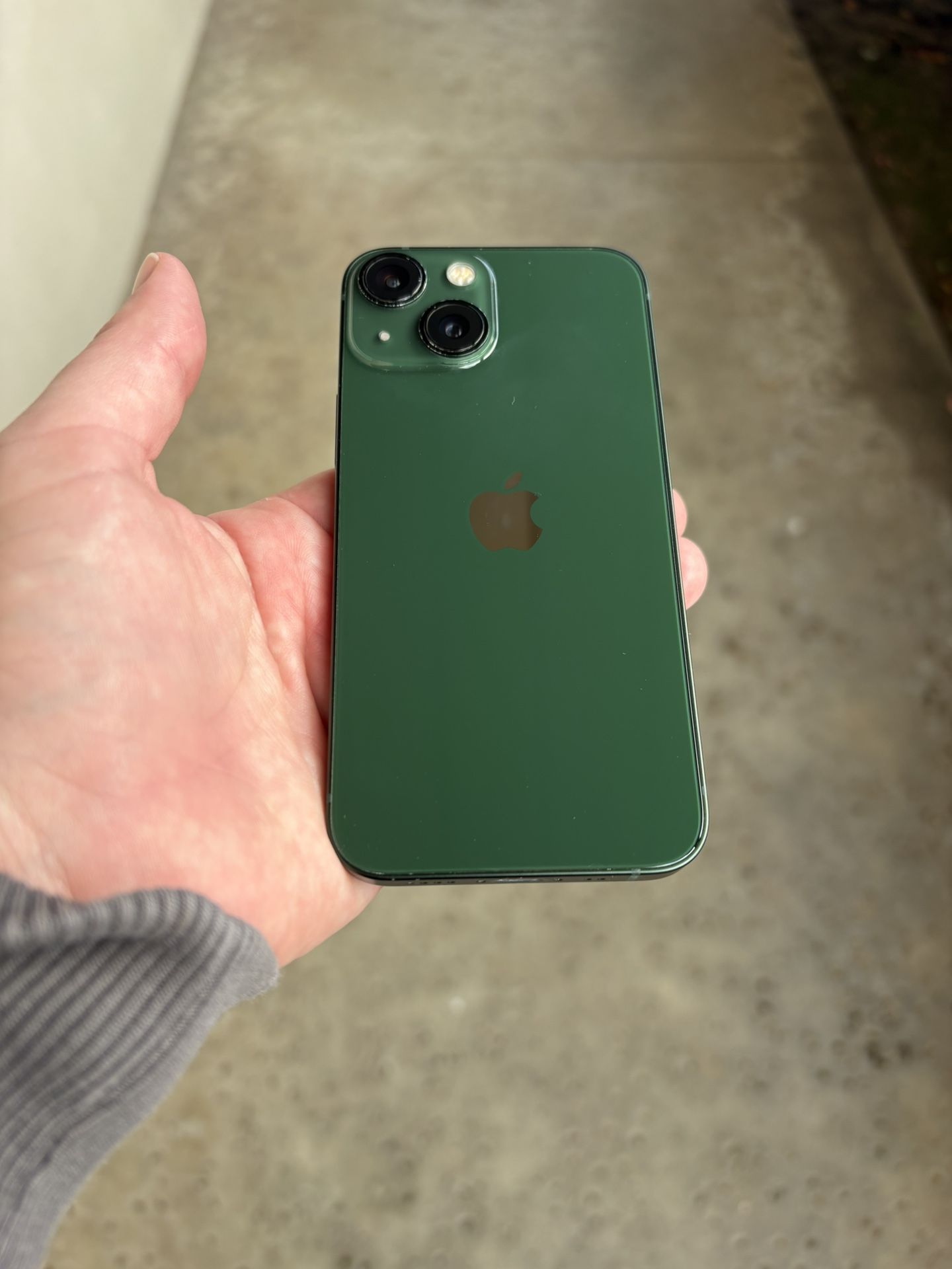 iPhone 13 Mini Green 128gb, unlocked. Screen with minor scratches, some scuffs on sides, back looks good.