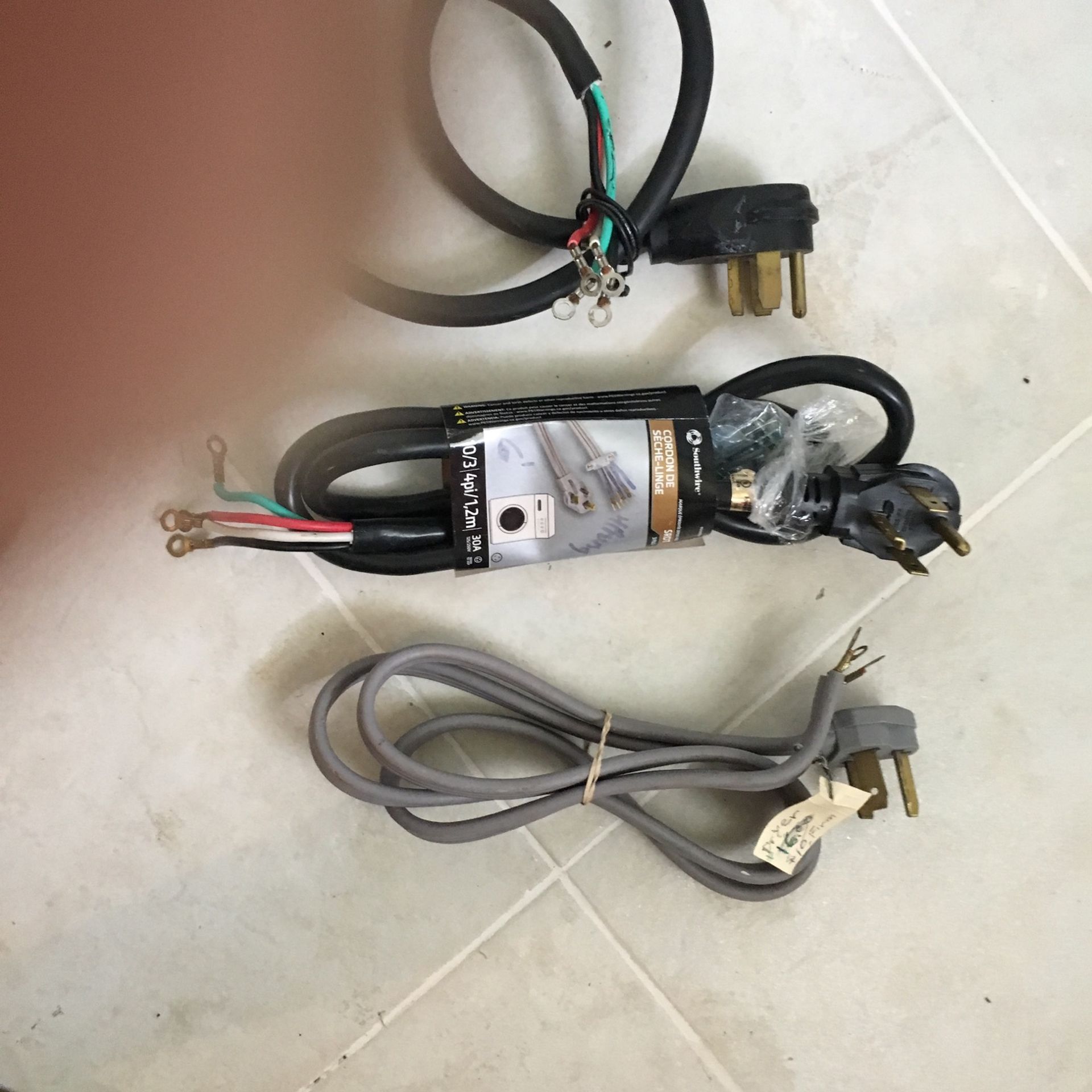 Three or four prong cables 6’ long to fit your dryer wall outlet fixture. Newer barely used, only $10 each. See my other items for sale, if a picture is there the item is available.