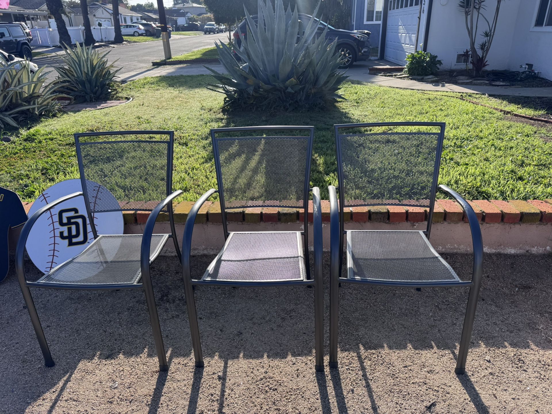 3 Metal Patio Chairs , good condition. Some minor scratches on arm Rest