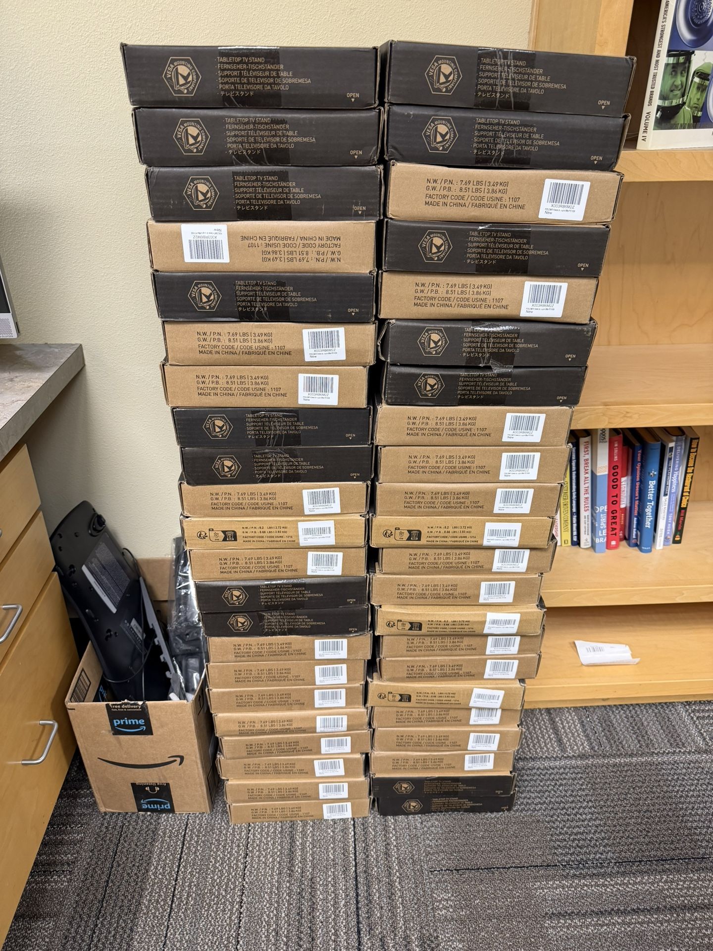 Purchased for a hotel, never installed. 60 total, pricing is each, heavy discounts for multiples. Tempered black glass stands and heavy duty vertical metal post. Adjustable up to 400mmx400mm (50” should work fine). Screen/ VESA /measurement guide in pics (3) for $20 (5) for $30 (10) for $50 All: (60) for $100