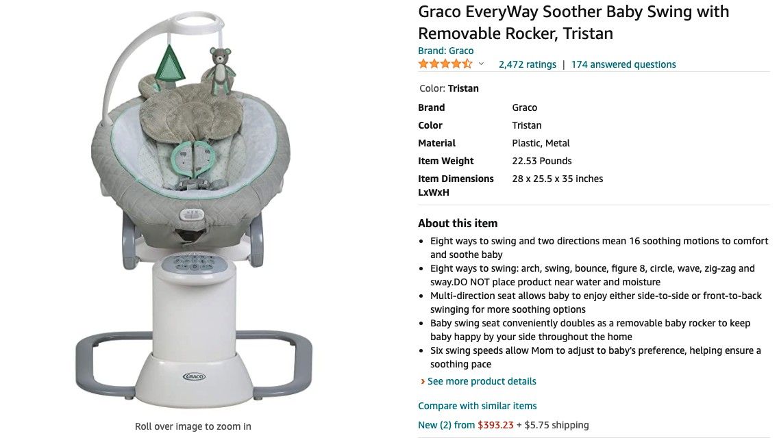This item is out of box and was hardly used as my baby didn't like swings much. Retails for $395. They don't make them anymore and they are top rated with Moms/Parents. $200 Firm