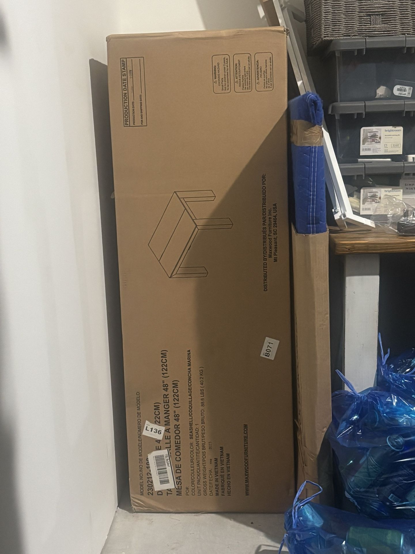Smaller dining table new in box. The company sent a replacement for slight damage, however we ended up still putting together and using the slightly damaged one . Also for sale is the put together table with slight damage - see other posting. Dimensions: Height (H) 30 IN Length (L) 48 IN Width (W) 32 IN