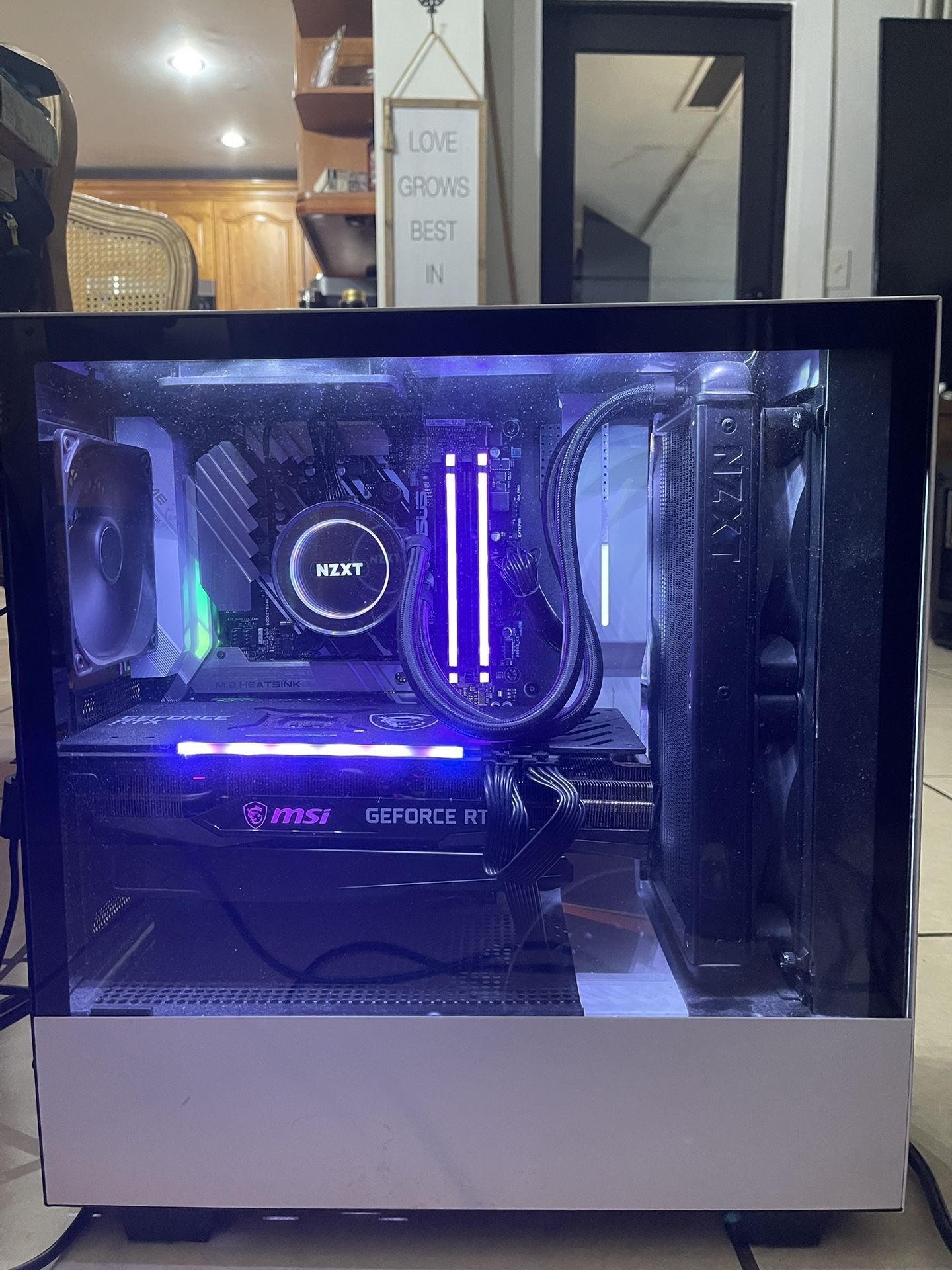 AMD Ryzen 7 2700X Eight Core CPU Asus Prime X470-Pro motherboard 2TB SSD NVIDIA GeForce RTX 3060 Ti 16 GB RAM NZXT Kraken watercooler Windows 11 Cyberpower NOHI 02 RGB Keyboard (Brand New) Cyberpower Elite M2 Gaming Mouse (Brand New)