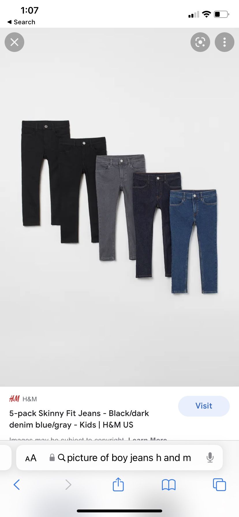 Brand new jeans and t-shirts from H&M. My grandson could not wear them. 9 pair of jeans and 6 t-shirt.