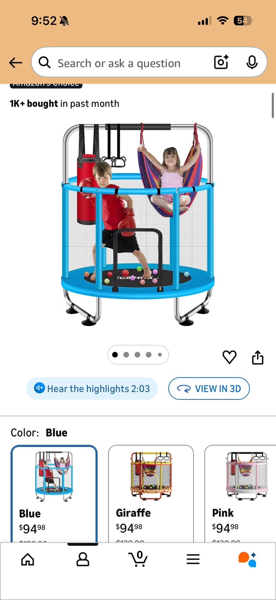 Just bought it from Amazon this trampoline is huge and has swing and monkey bar with boxing gloves included only used for a week and it takes so much of place so getting rid of it in extremely great condition