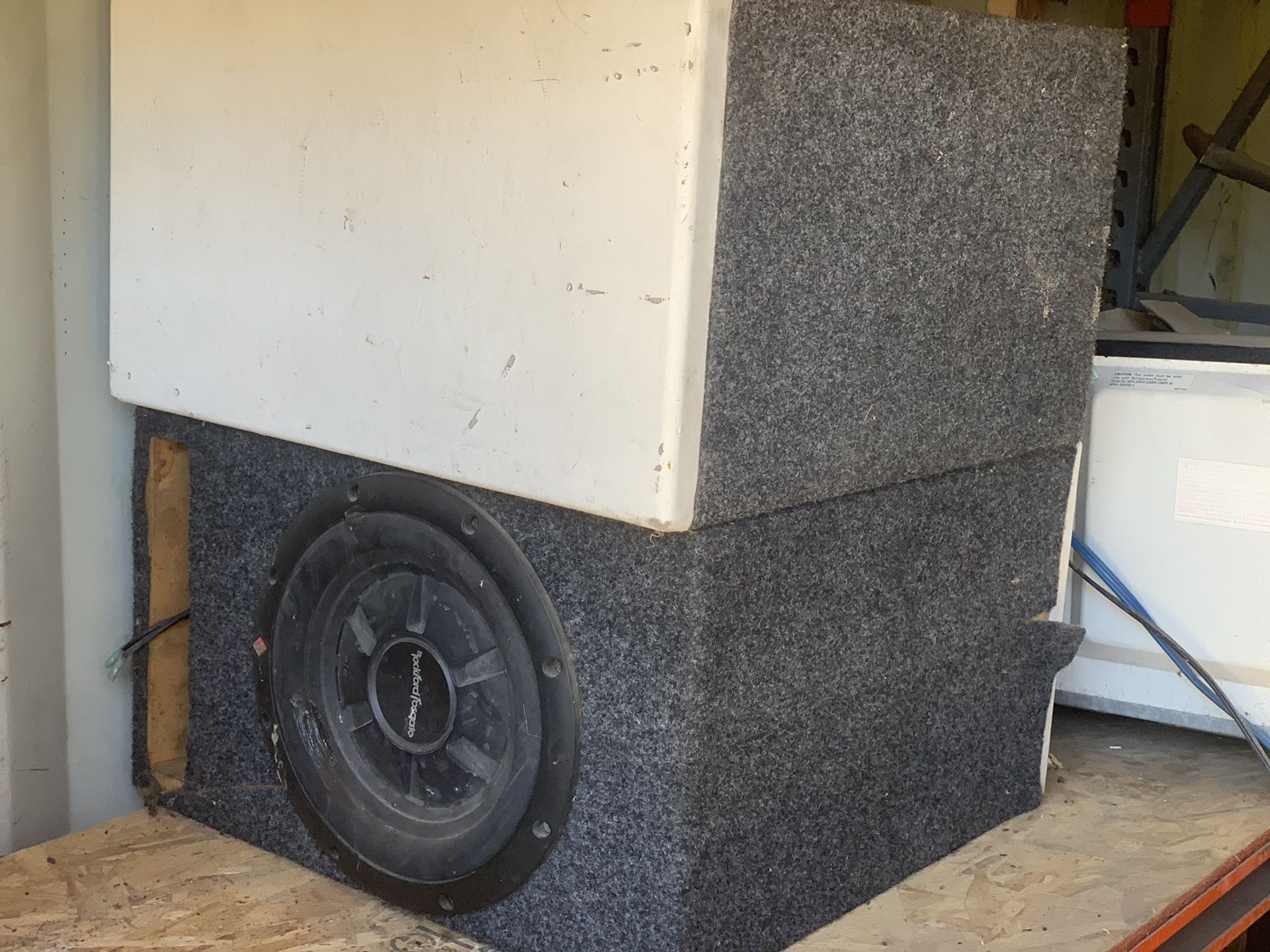 Under back seat of boat speakers 10 inches subs They work but need new speakers These came off my first boat when sold Sea rAy Boxes great condition Fit in back of boat under seats by motor..