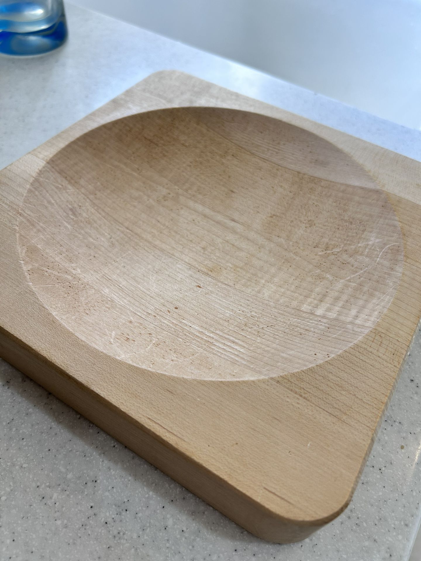 Solid wood, concave cutting board. Ideal for chopping & mincing with a curved Ulu knife. Bowl area is approximately 8.125” in diameter. Backside is flat & can be used as a conventional cutting board. Only used a handful of times. In great condition.