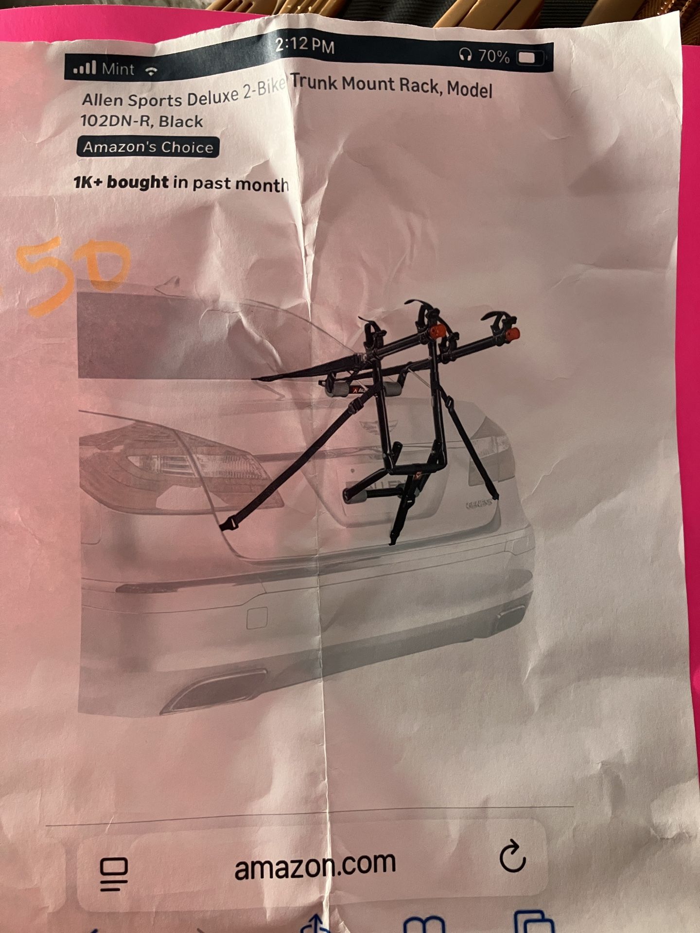 Brand new..used once on Kia optima. Worked great w no issues. Holds 2 bikes.