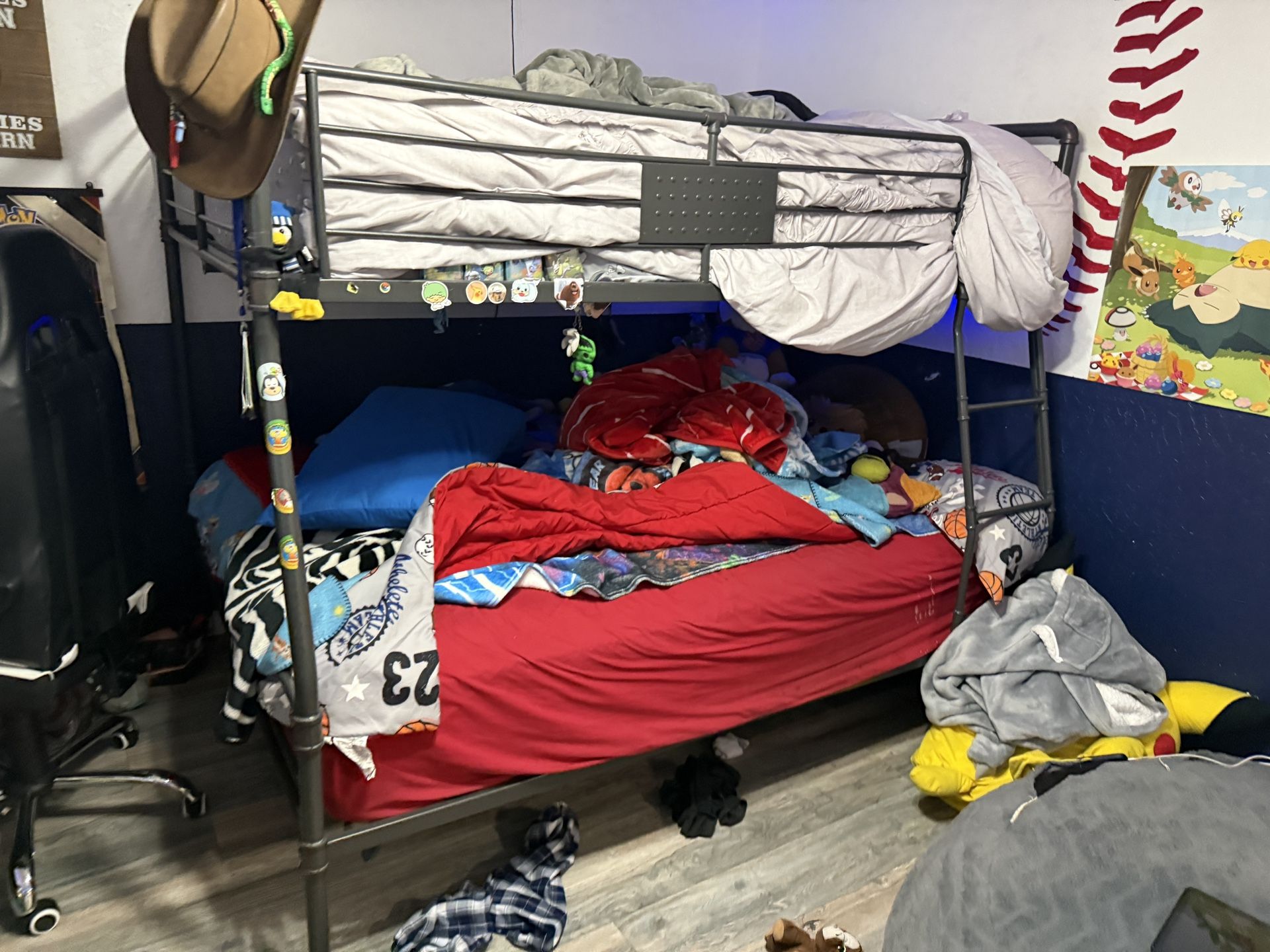 Bunk bed includes full sized mattress on top Bottom is queen size, but doesnt include matress. Bean bag also available for $50 OBO