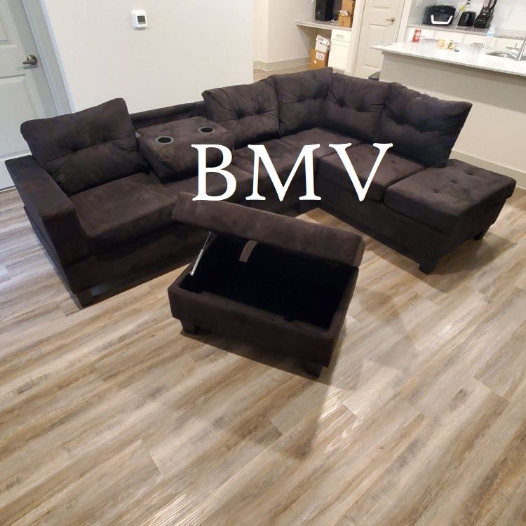 New Sectional with Storage Ottoman - AVAILABLE IN BLACK, GREY, AND CHOCOLATE BROWN