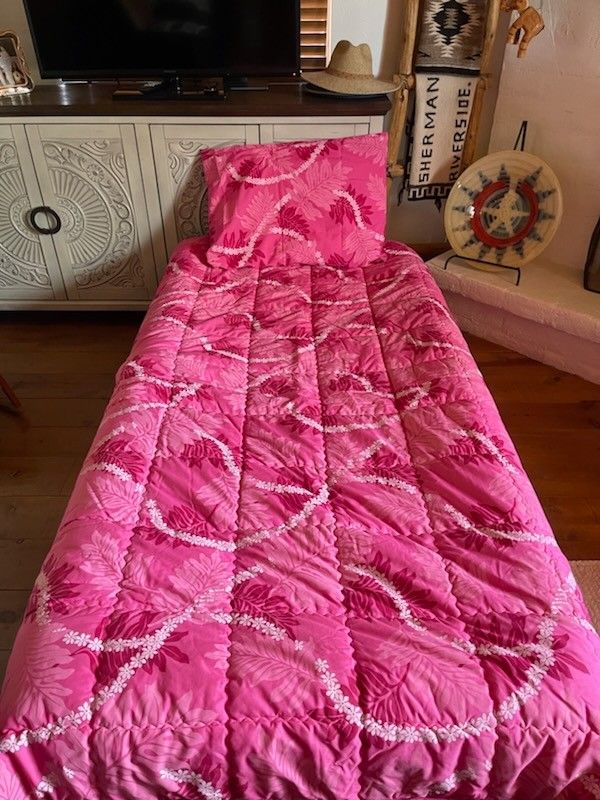 Hawaiian Pink Quilted TWIN Bed Comforter.