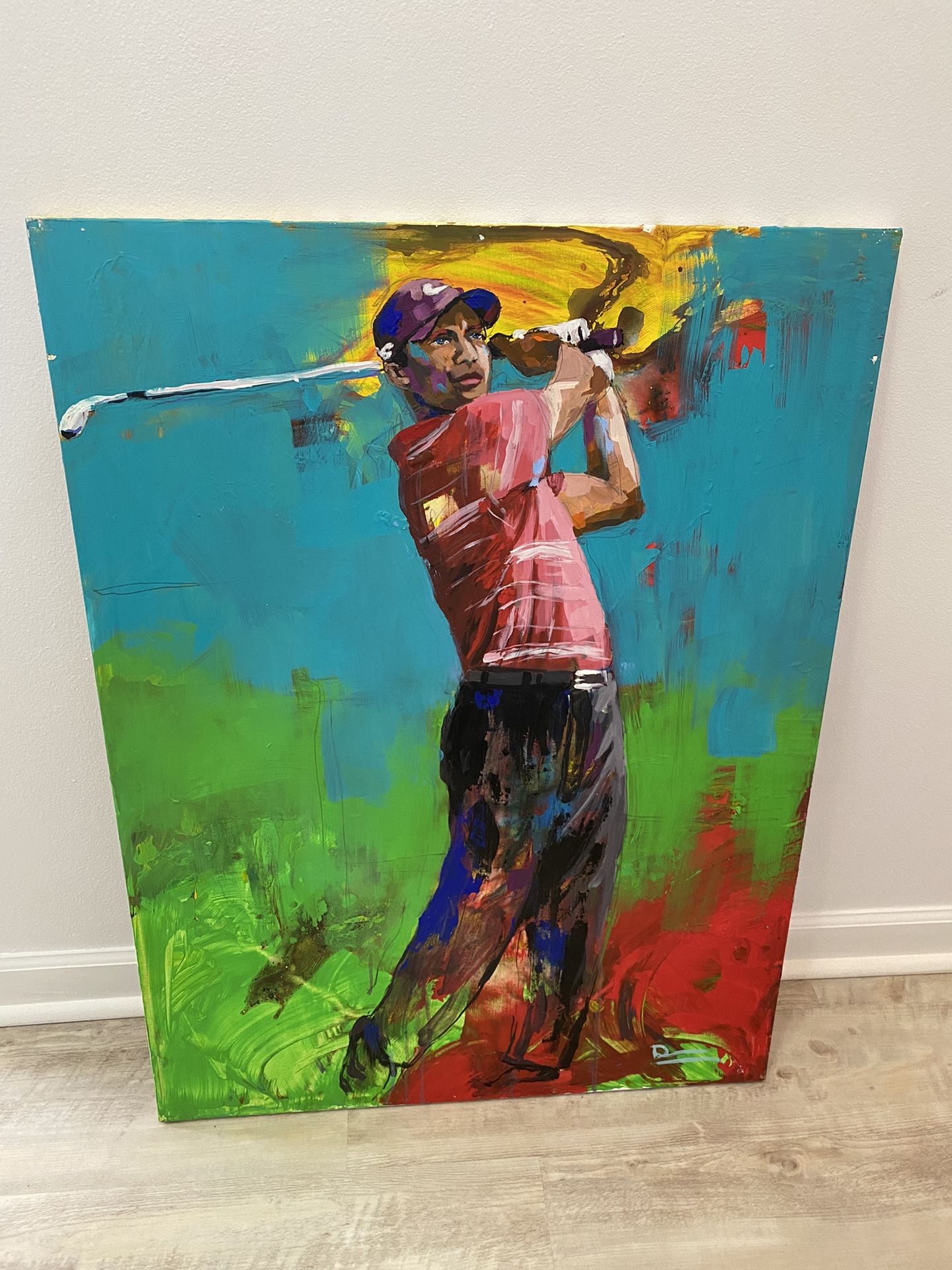 Custom Hand Painted Tiger Woods Art Canvas 30in Wide 40in Tall