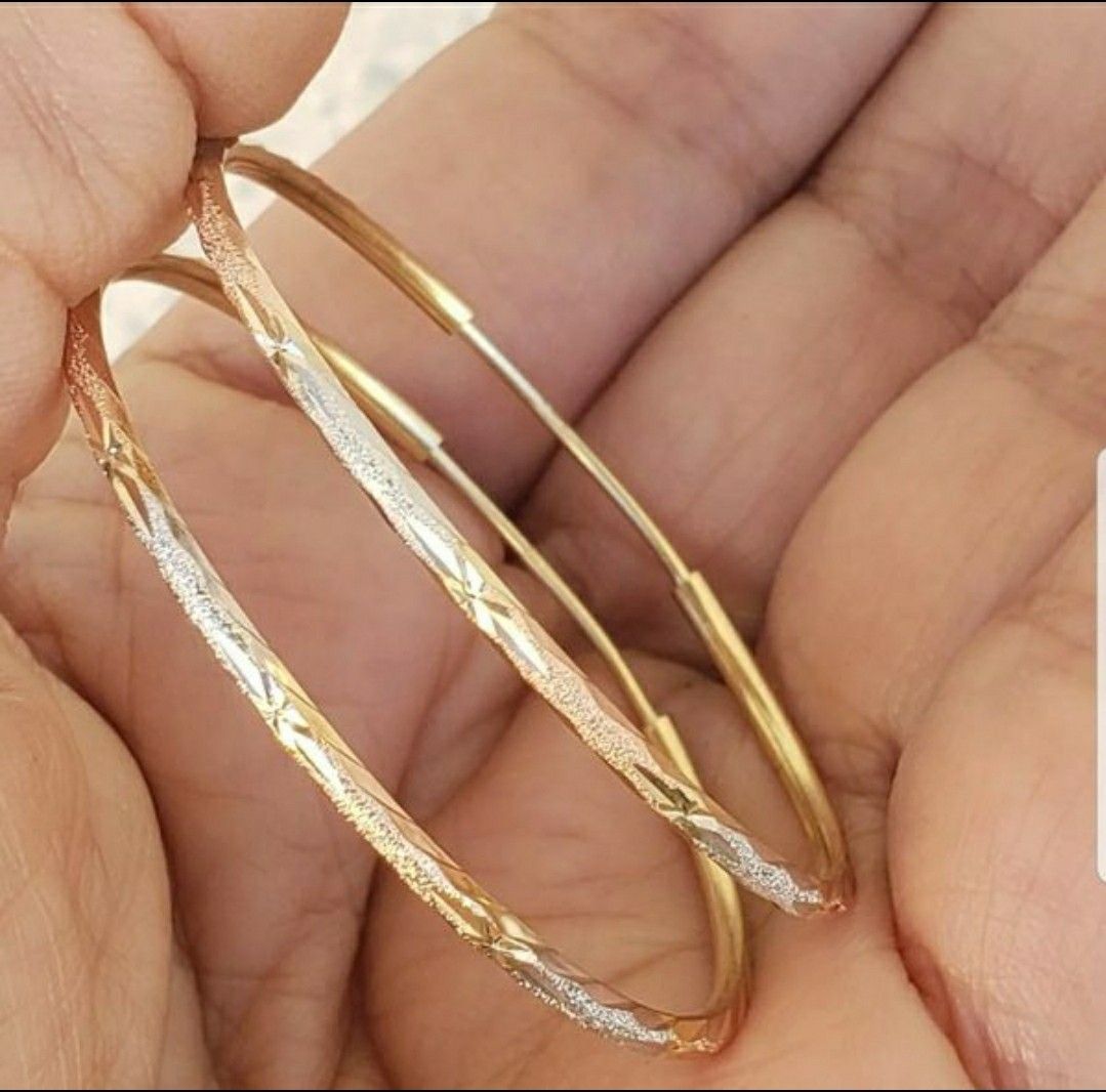All 100% Genuine real PURE 14K GOLD woman's real 3 color 14k yellow white and rose matt and shiny gold diamond cut design hoop earrings. Excellent quality and design . Beautifully crafted and detailed APPROXIMATE MEASURMENTS length: 1.50 inches long weight: 2.3 grams Comfortable earrings see pictures for more details . phots have been enlarged to show details please acknowledge the sizes.
