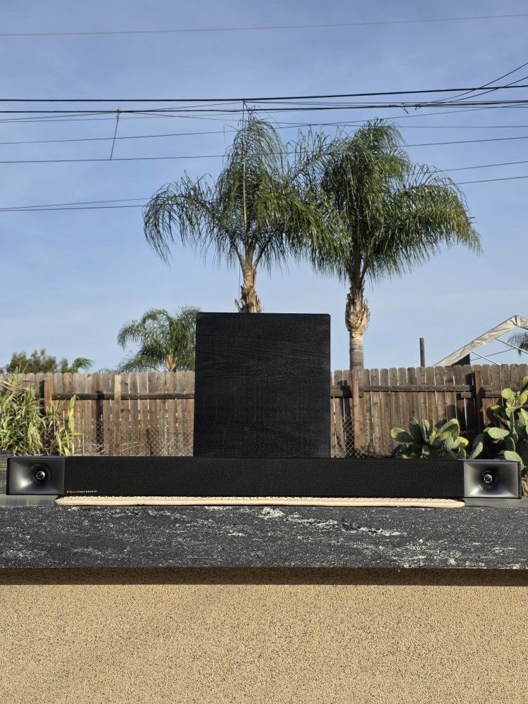 Klipsch Cinema 400 Bundle With Klipsch Subwoofer all Bluetooth and Hdmi ARC connections high level Klipsch offers for this model, this comes with everything you need and power cable included, it has a beautiful Center two-way speaker design in the center of the sound bar with left surround and right surround Axis angled to give you that Dolby surround experience without all the space taken this klipsch model has super clear audio with very good low-end bass and that 8-inch Klipsch Subwoofer Hints! It sounds amazing since it has a bottom Port design with a baffle any placement in a corner of a room and with without all these crazy wires since it's a Bluetooth connectivity to the sound bar automatically when you turn it on it works amazing it has an auto off feature as well once the signal senses the TV has turned off or anything you have connected to it! The klipsch sound bar horn housing technology design is amazing for movies music and gaming, it's super clear with vocals and enough Rich tone that it doesn't distort audio like most other speakers would, since this is the Main Stage series model it's one of the high ones having better capacitors and the Beautiful black design even provided with wood finish ends, it just looks so clean and beautiful and this model since they're the higher models over the regular low end models, this model has a full special housing Around the Tweeter & Bass design giving you better reach to the viewer and listener for wide loudspeaker range and more clarity without any Distortion sounds, with its low and high 180° design you have a full wide range compared to other speakers out there, and the subwoofer has some good weight to it it's sturdy with a bottom Port design as well giving you that huge low end bass! We have a bunch of other klipsch speakers, marantz and denon receivers, subwoofers, speaker stands, speaker cables, TV & OLED TV available, all from theater setups, honestly when you come by you'll see what we mean we have full setups and can give you a bundle deal if you would like more hope this