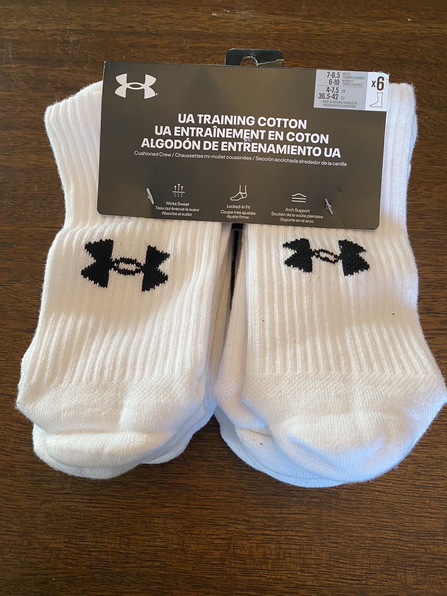 Under Armour Cushioned Crew Mi-Mollet White Socks 6 Pair Of Men's Size 7-8.5 & Women's 6-10 New