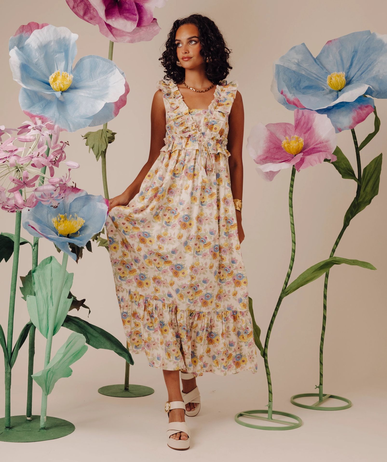 Style #: (contact info removed)2 The Penida Dress presents a romantic empire silhouette with ruffle straps and a cinched waist, crafted from Liberty London's cotton fabric Maxi length, empire silhouette, ruffle straps, v-neckline, drawstring at empire waistline, and pullover styling Made with 100% Cotton Measurement: 54.5” (falls from shoulder) New with tag Retail price: $425 Storage: U - 4(contact info removed)2025 CH